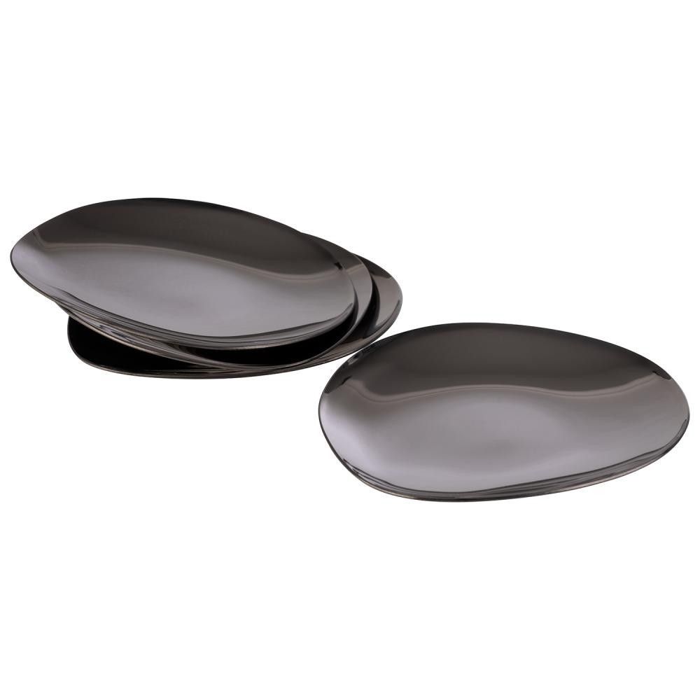Teller Tellerset 4 Stück Edelstahl PVD-beschichtet schwarz 9x9x1 cm neu