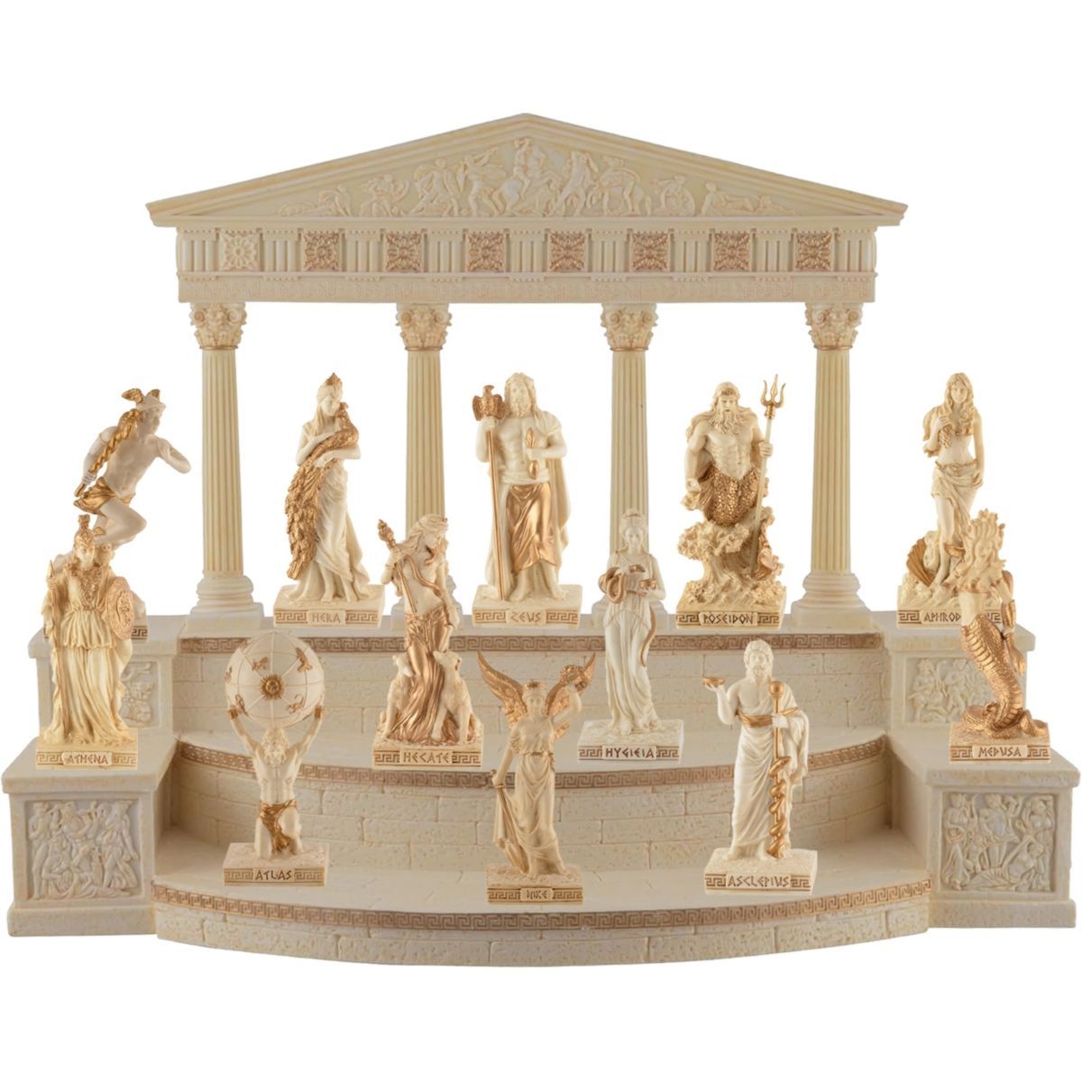 Tempel des Olymp Display mit 12 griechischen Götterfiguren in weiß-gold