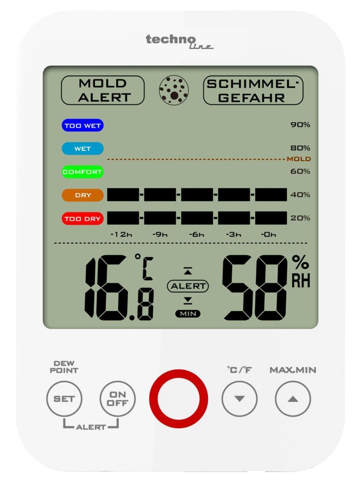 WS 9422 Raumklima Station Das Besondere an dieser Station ist nicht nur die Möglichkeit, dass Sie sich Ihren eigenen Luftfeuchtealarm programmieren können, sondern ergänzend dazu der integrierte Schimmelalarm. Dieser wird ausgelöst, wenn die Luftfeuchtigkeit über einen längeren Zeitraum besonders ho