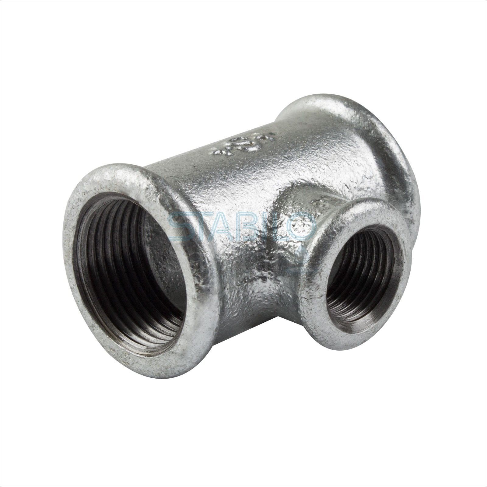 Temperguss Rohr T-Stück 2 x 1 1/4 x 2 Zoll Reduzierung T-Stücke Fitting verzinkt