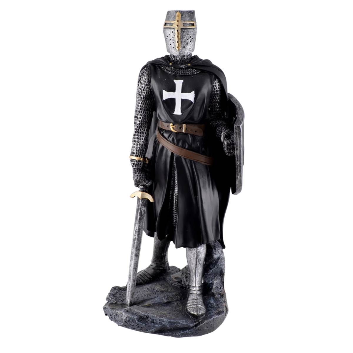 Templerritter mit Schild und Schwert schwarz mit weißen Kreuz