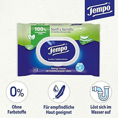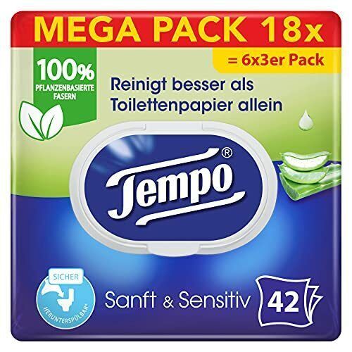 Tempo Toilettenpapier Klopapier Feucht Sensitiv Mega Pack 18 Packungen 42 Blatt