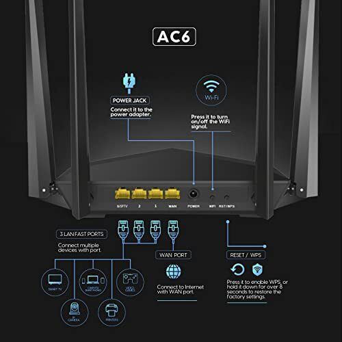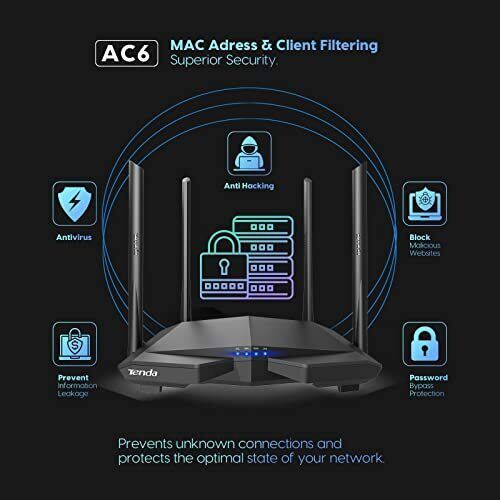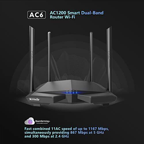 Tenda Tenda AC6 AC1200 Dual-Band WLAN-Router 1200 MBit/s 2,4Ghz & 5Ghz QoS Schwarz