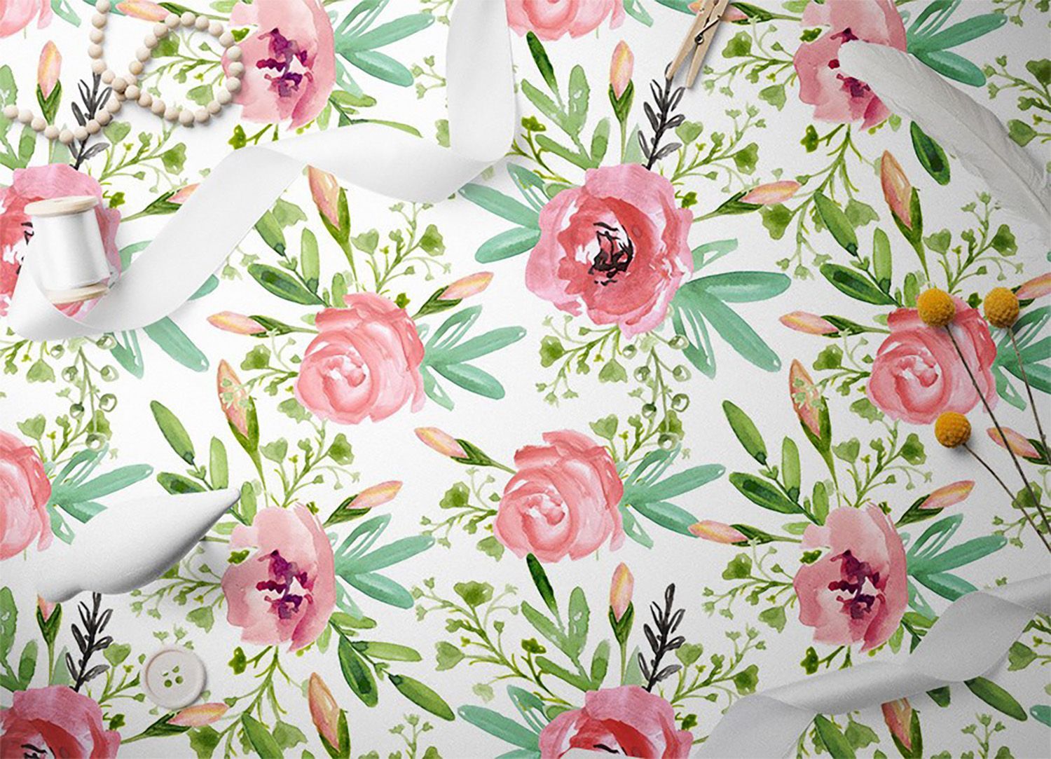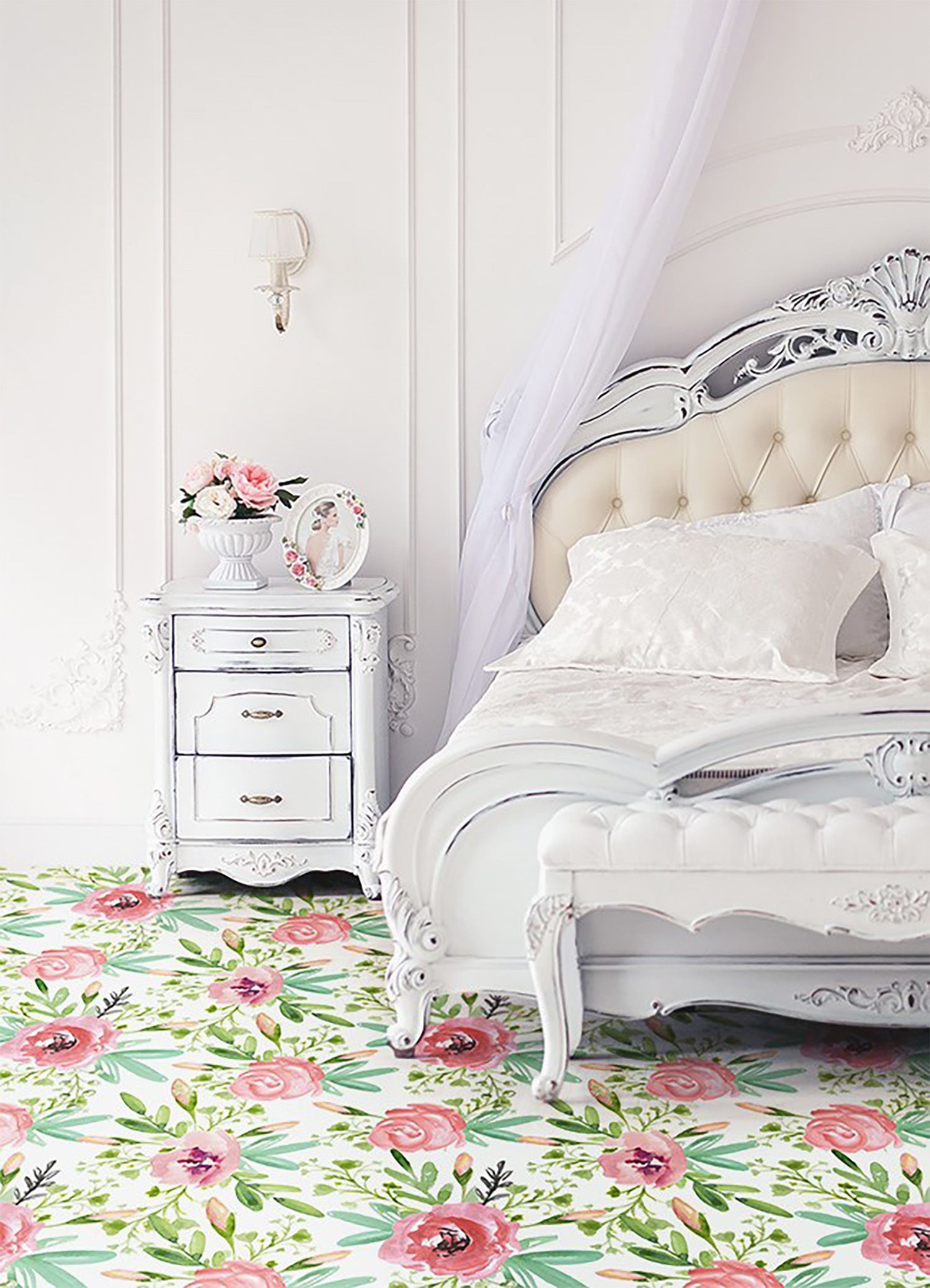 Teppich Auf Pvc Zum Schlafzimmer Tulup Grün aquarellrosen Bodenmatte