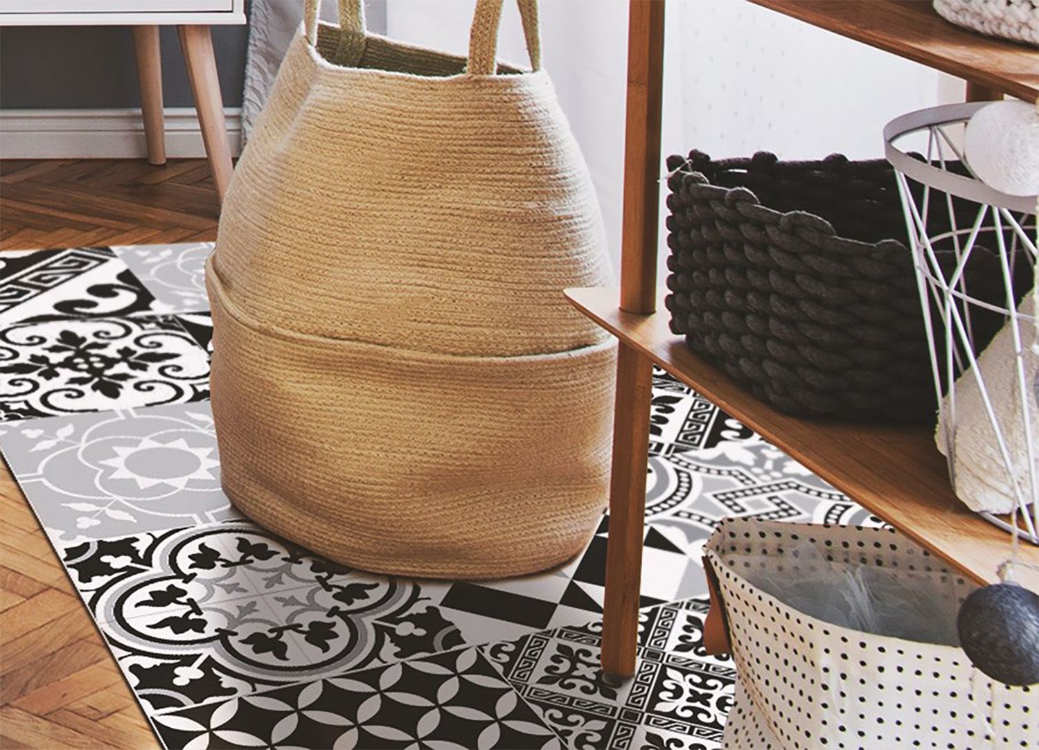 Teppich Auf Pvc Zum Schlafzimmer Tulup Schwarz -Weiß verrückte Muster Bodenmatte