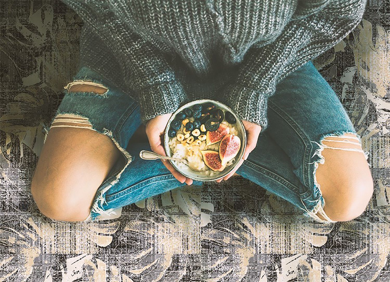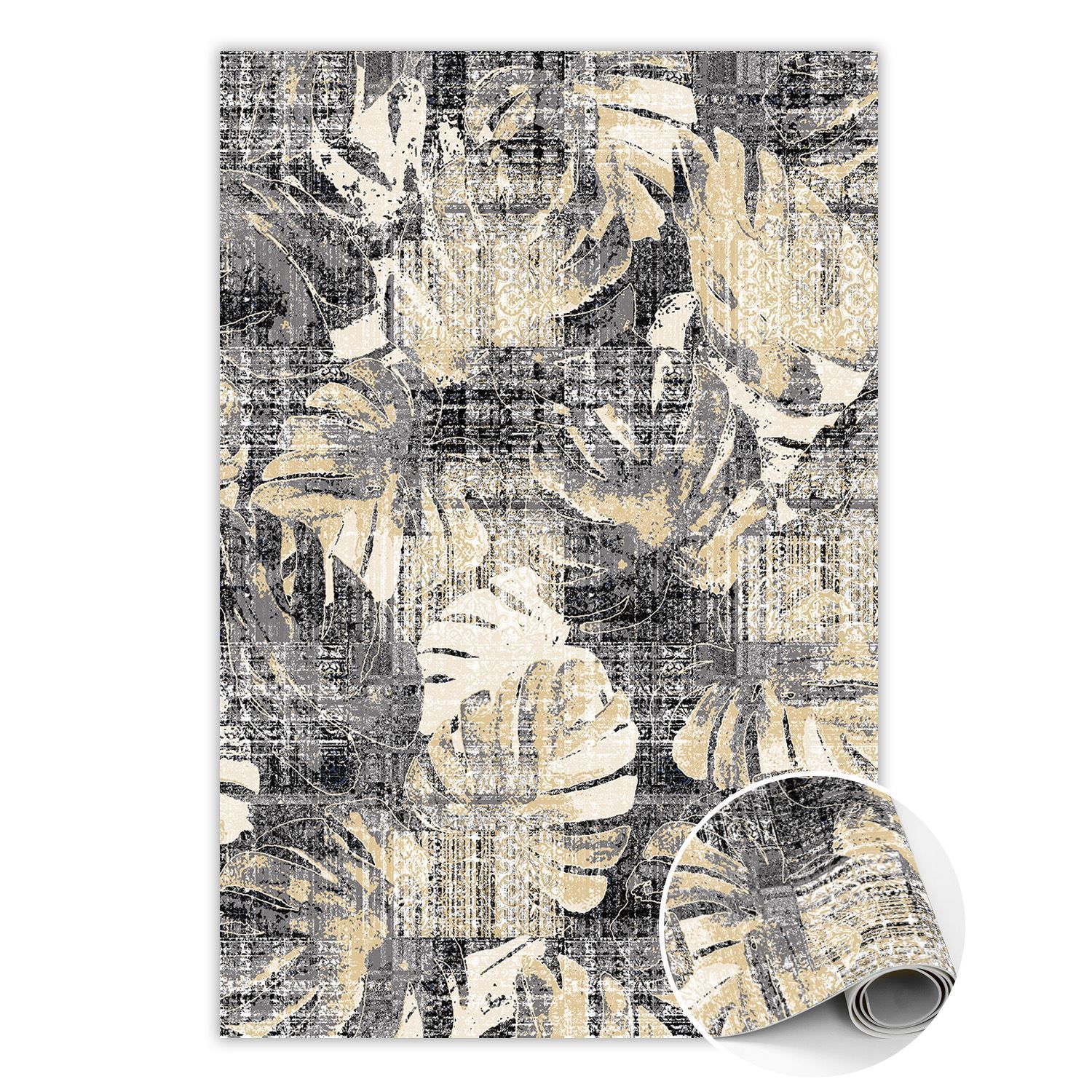 Teppich Auf Pvc Zur Küche Tulup Grau monstera-Blatt-Motiv Bodenmatte