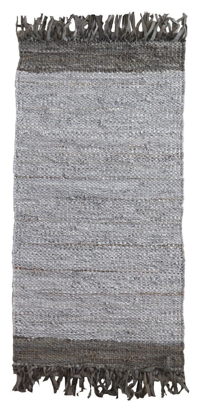 Der Teppich aus Baumwolle und Jute hat die Maße 60x120 cm und ist handgewebt. Er