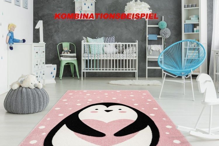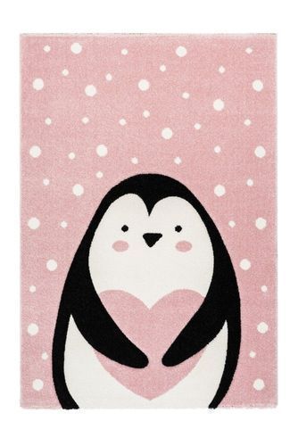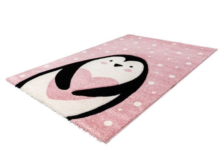 Teppich Kinderzimmer Tiere Pinguin Kinder Spielteppich kurzflor rosa Baby weich