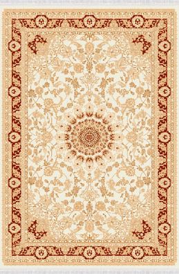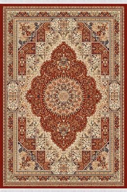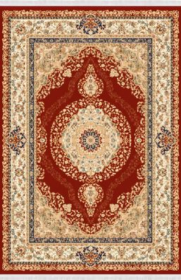 Orientalisch Teppich Klassisch Kunstteppich Kurzflor Bordüre Rot Beige