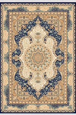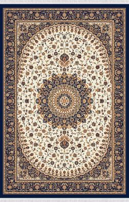 Orient Teppich Kunstteppich Traditionell Kurzflor Bordüre Blau Beige 150x233