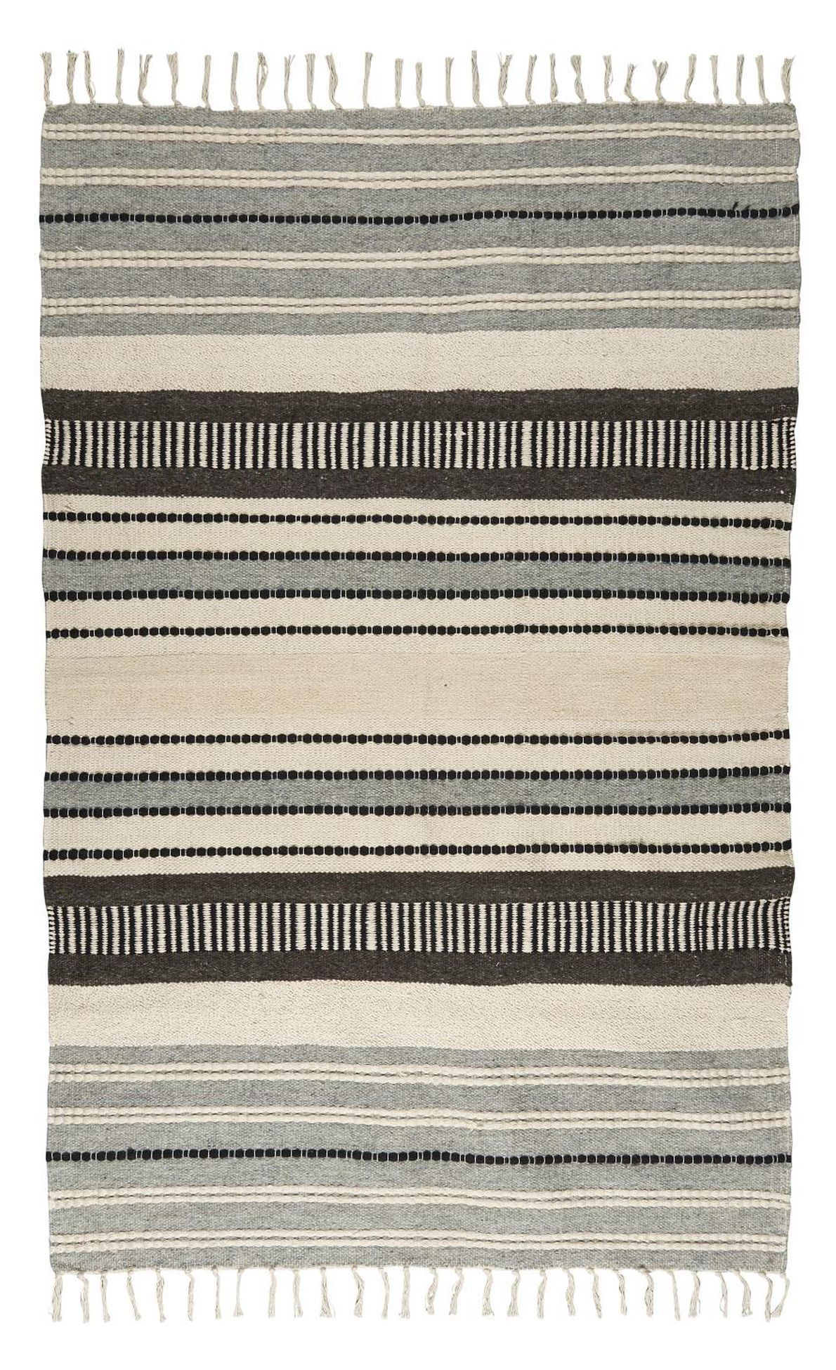 Teppich Läufer Grau Natur gestreift 120x180cm Baumwolle Wolle Ib Laursen 6439-00