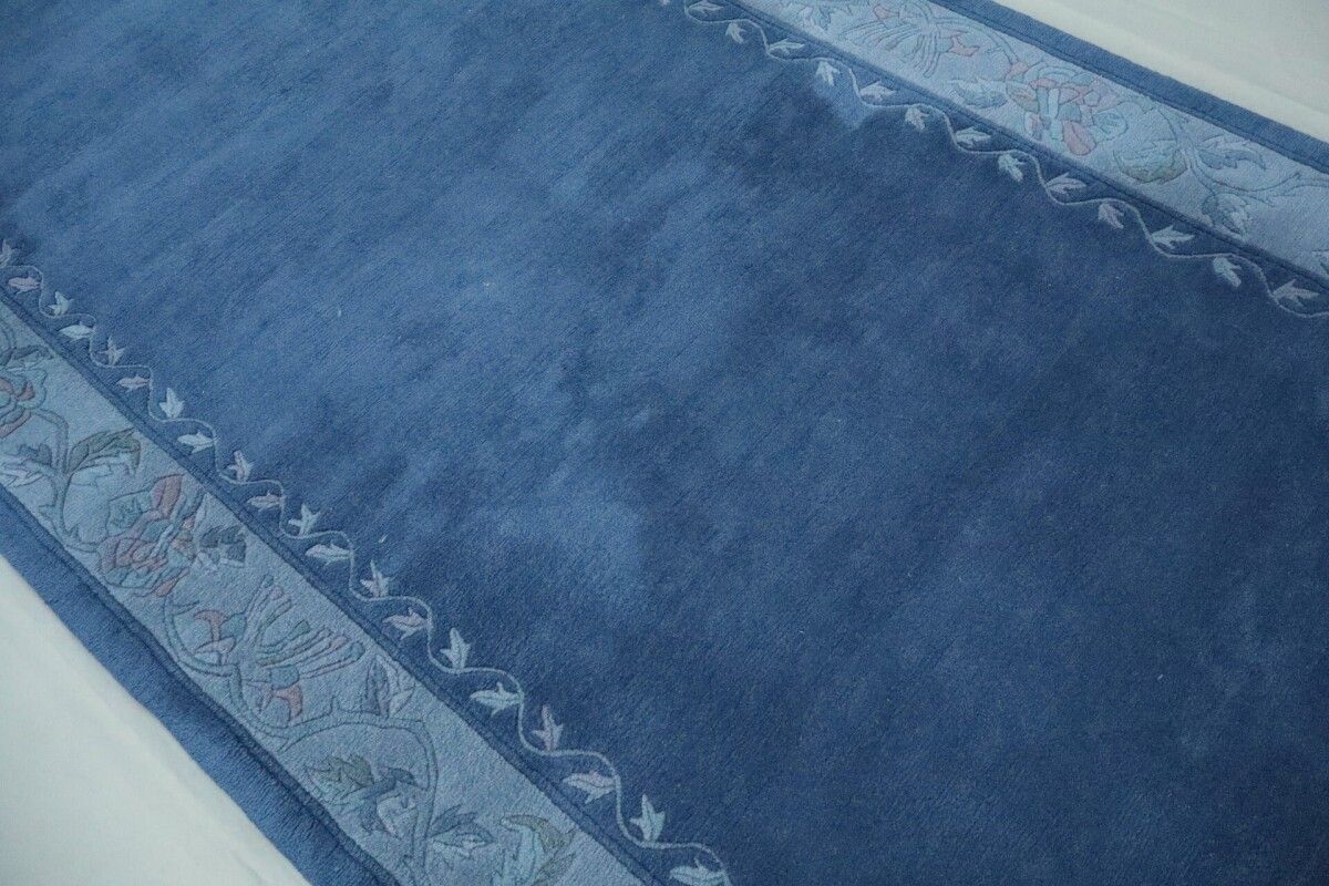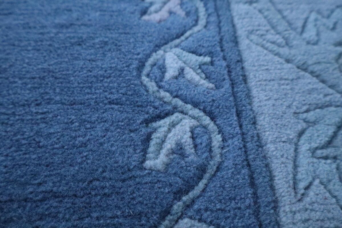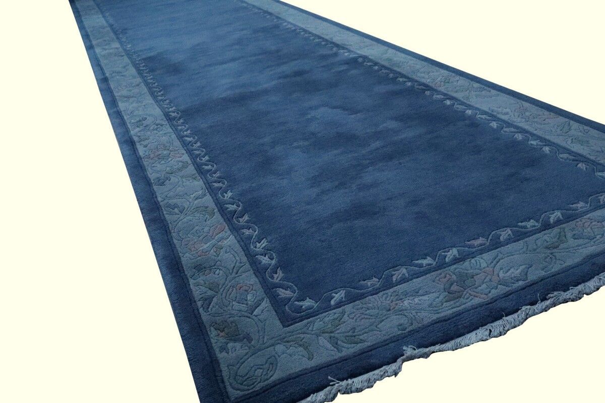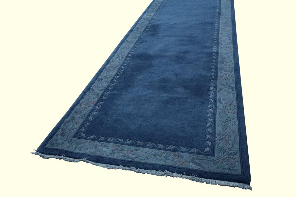 Teppich Läufer Original Nepal Avantgard 140x540 cm Handgeknüpft 100% Wolle blau