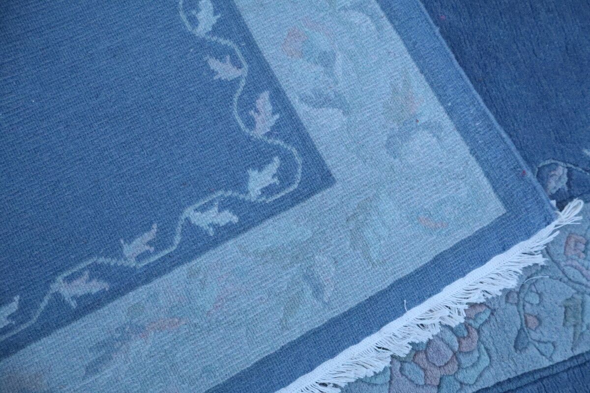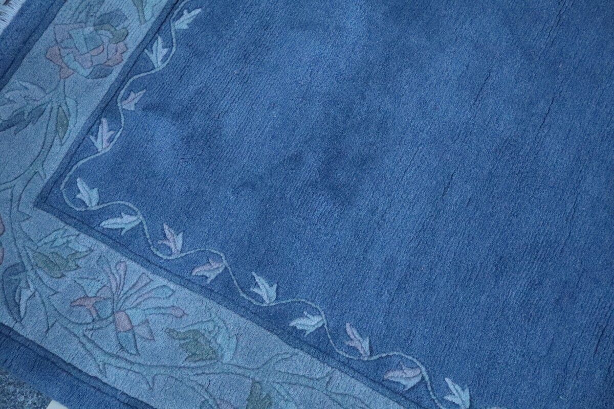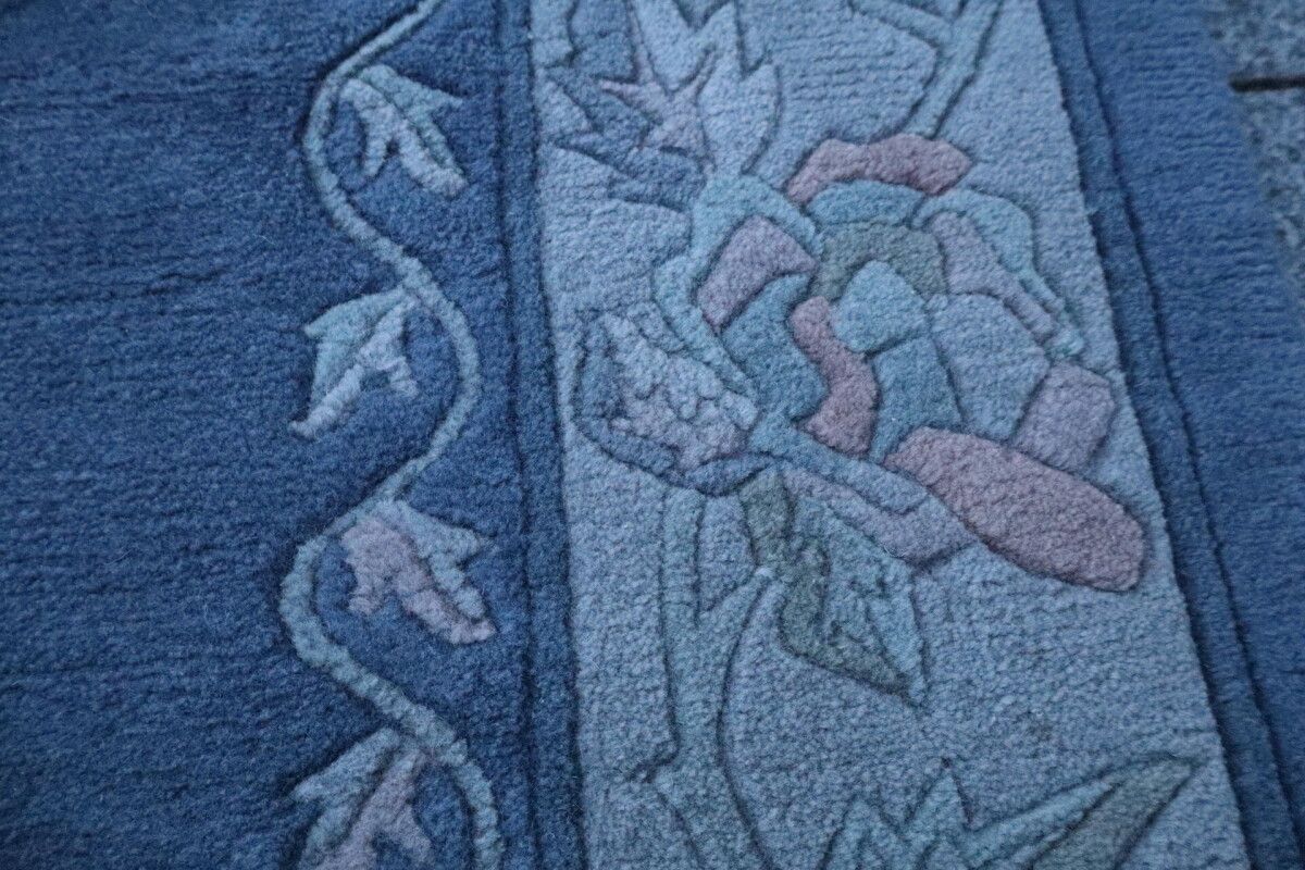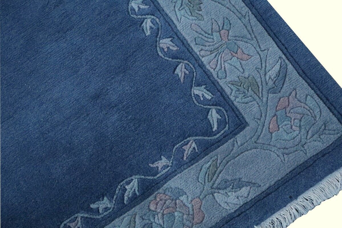Teppich Läufer Original Nepal Avantgard 140x540 cm Handgeknüpft 100% Wolle blau
