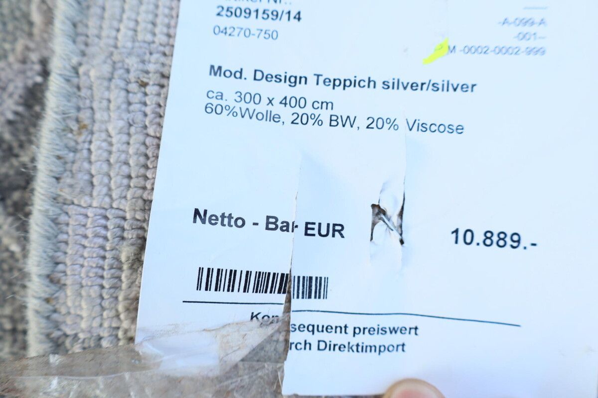 Teppich Nepal Handgeknüpft Wolle Kunstseide 300x400 cm Carpet grau grünlich