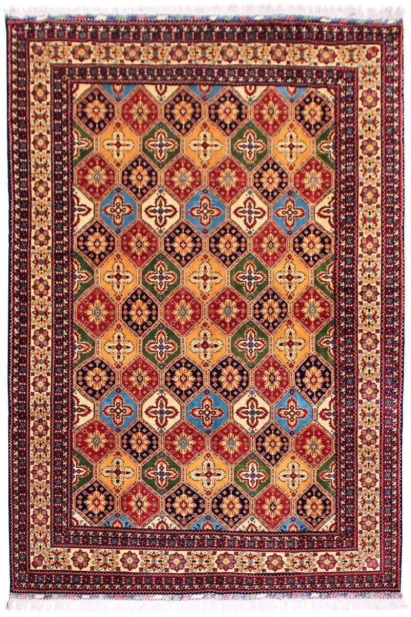 Teppich Orient Afghan 200x300 cm 100% Wolle Handgeknüpft Tappeto Carpet multi