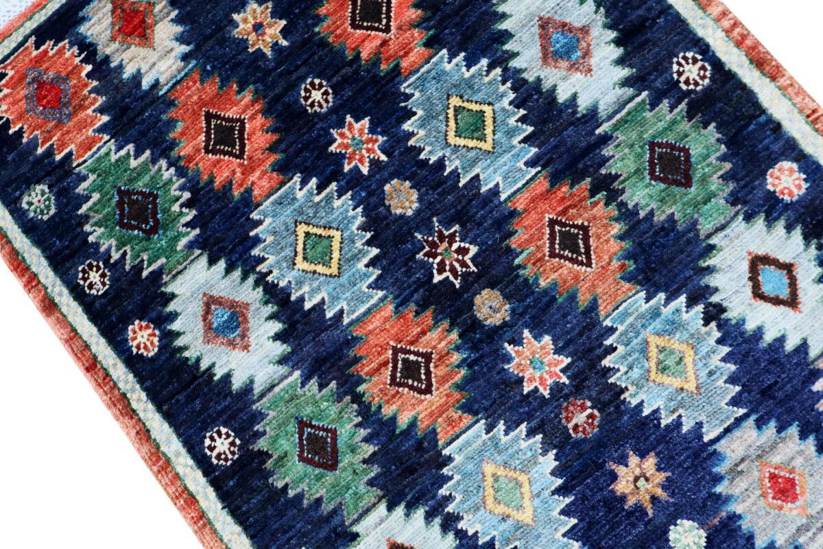 Teppich Orient Ziegler Brücke 60x90 cm 100% Wolle Handgeknüpft Carpet blau multi