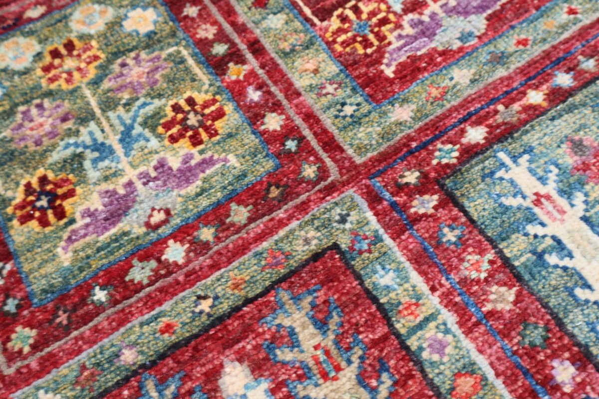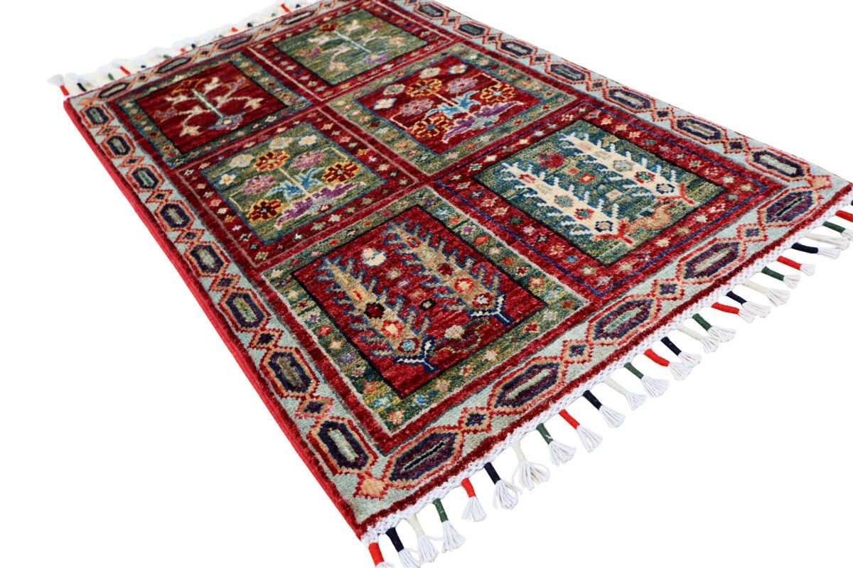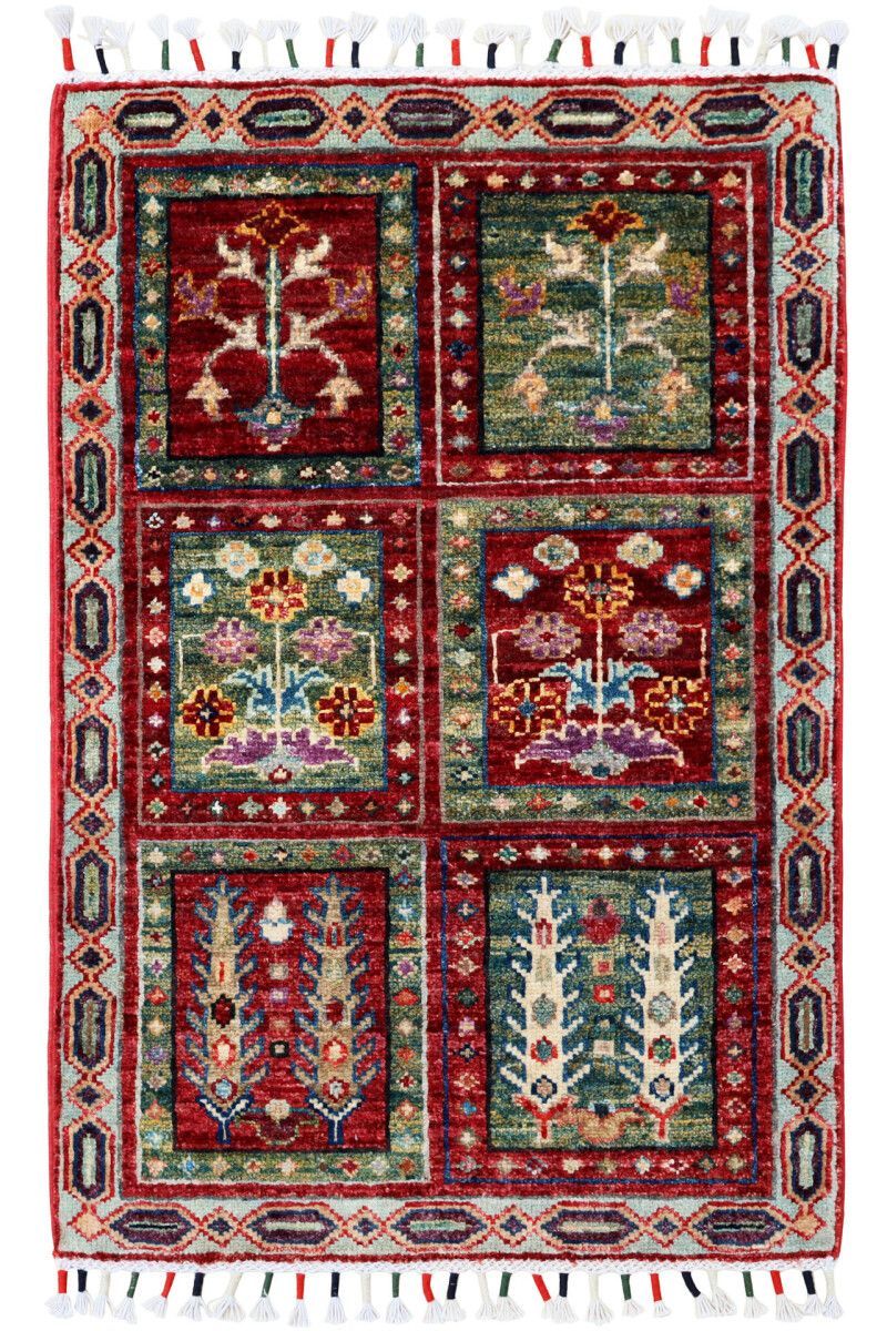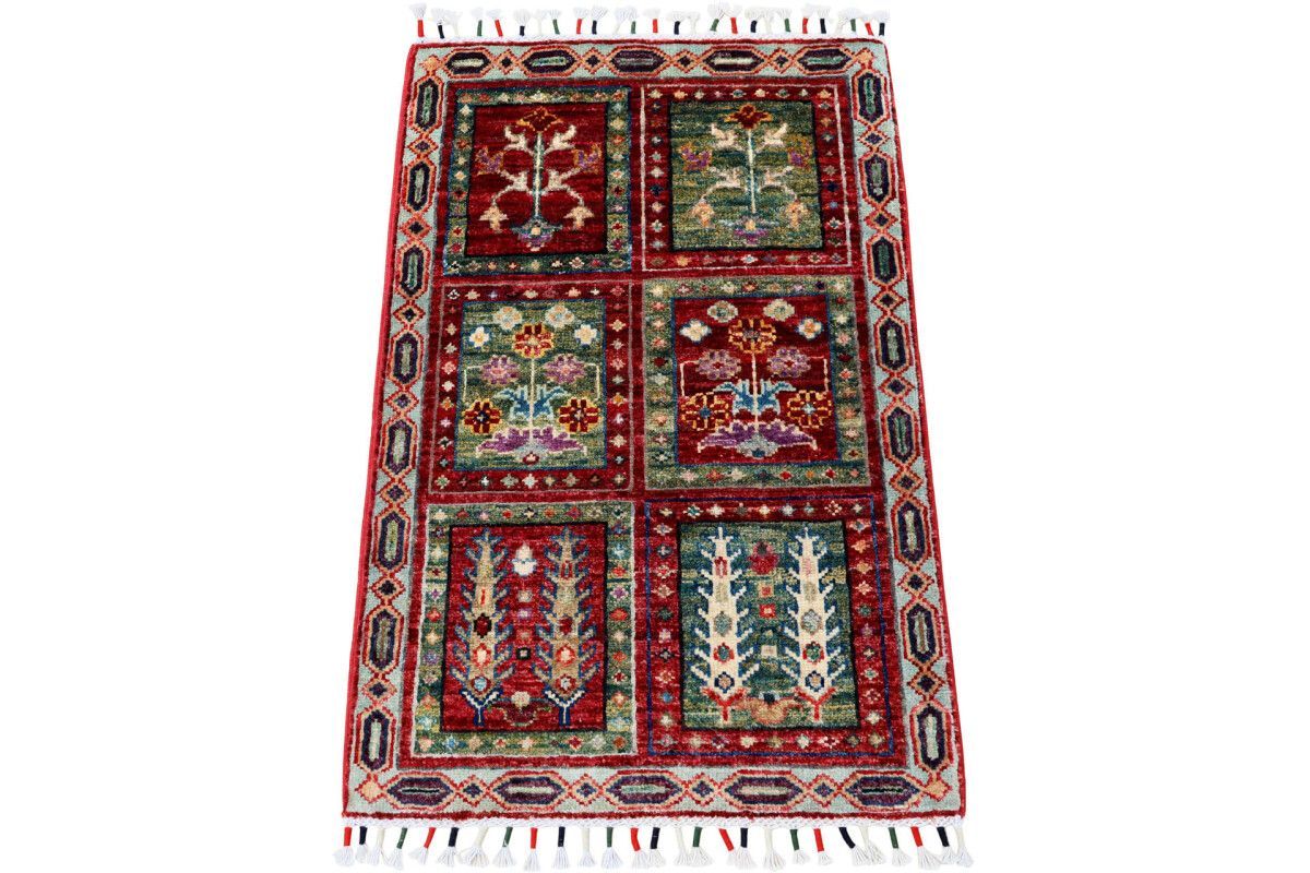 Teppich Orient Ziegler Felder Bakhtiar 60x90 cm 100% Wolle Handgeknüpft grün rot