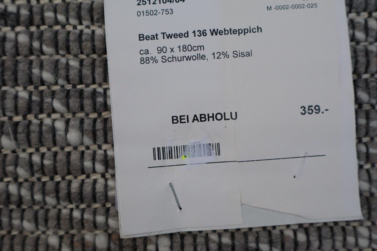 Teppich Paulig Beat Tweed 90x180 cm 100% Wolle beidseitig verwendbar Handgewebt