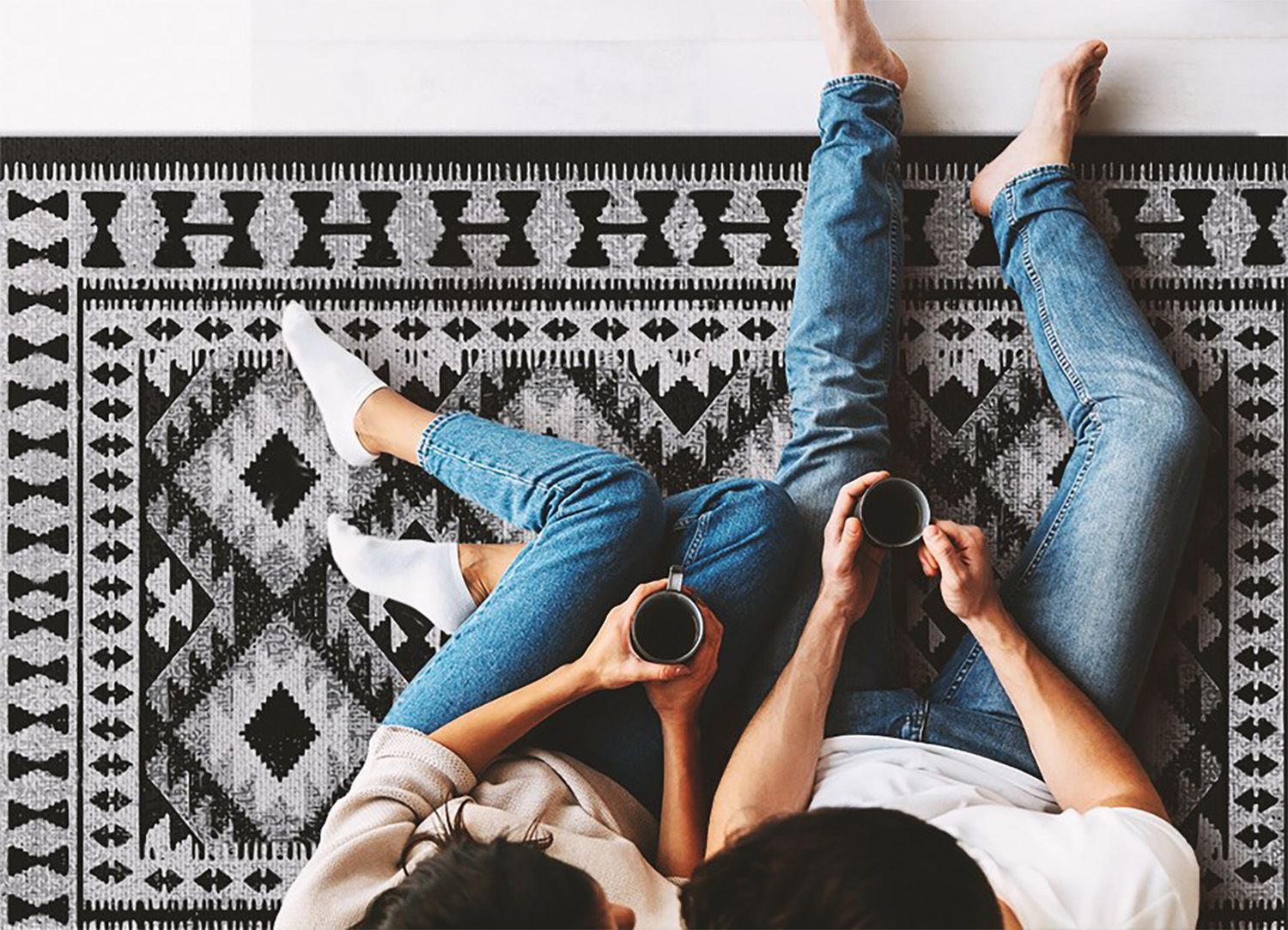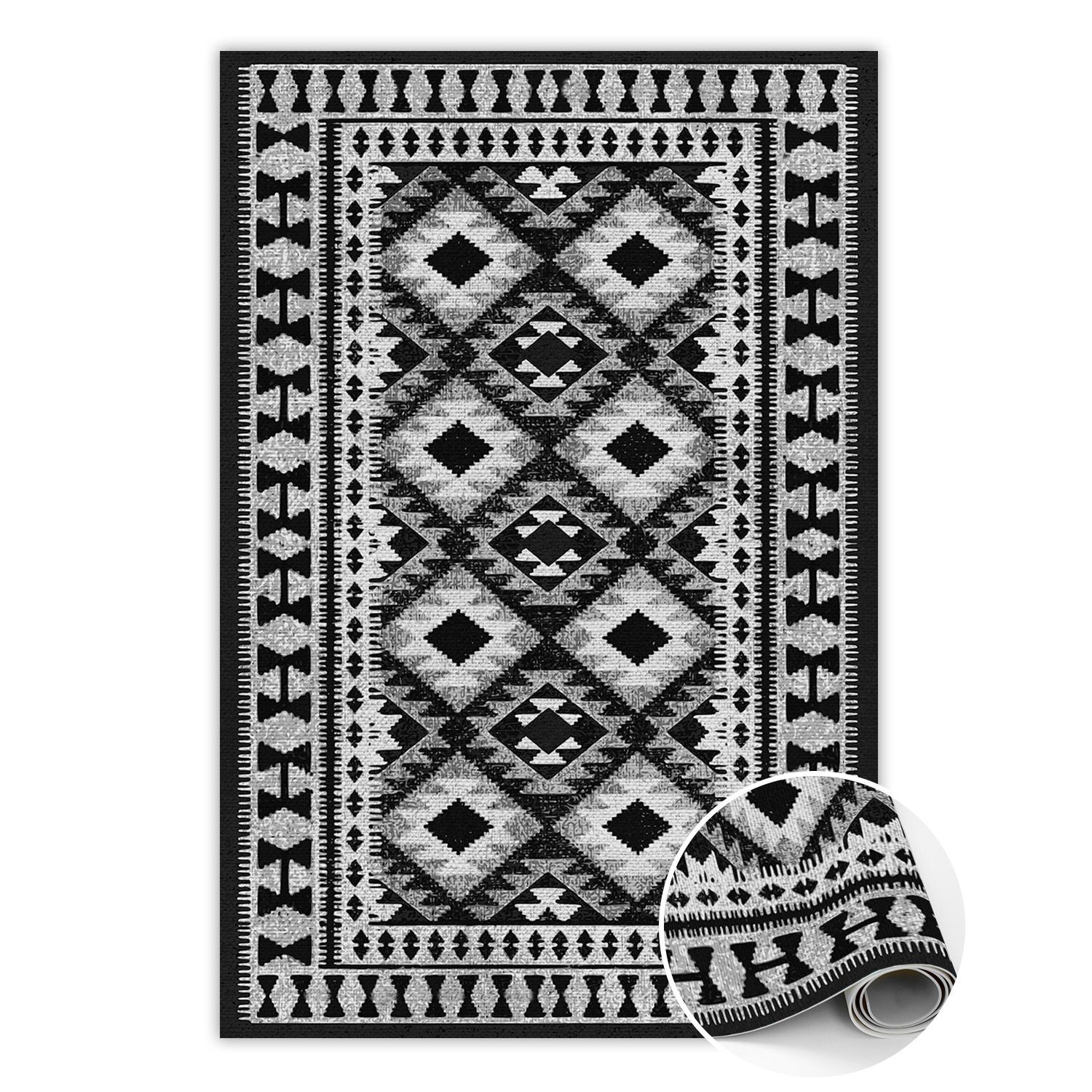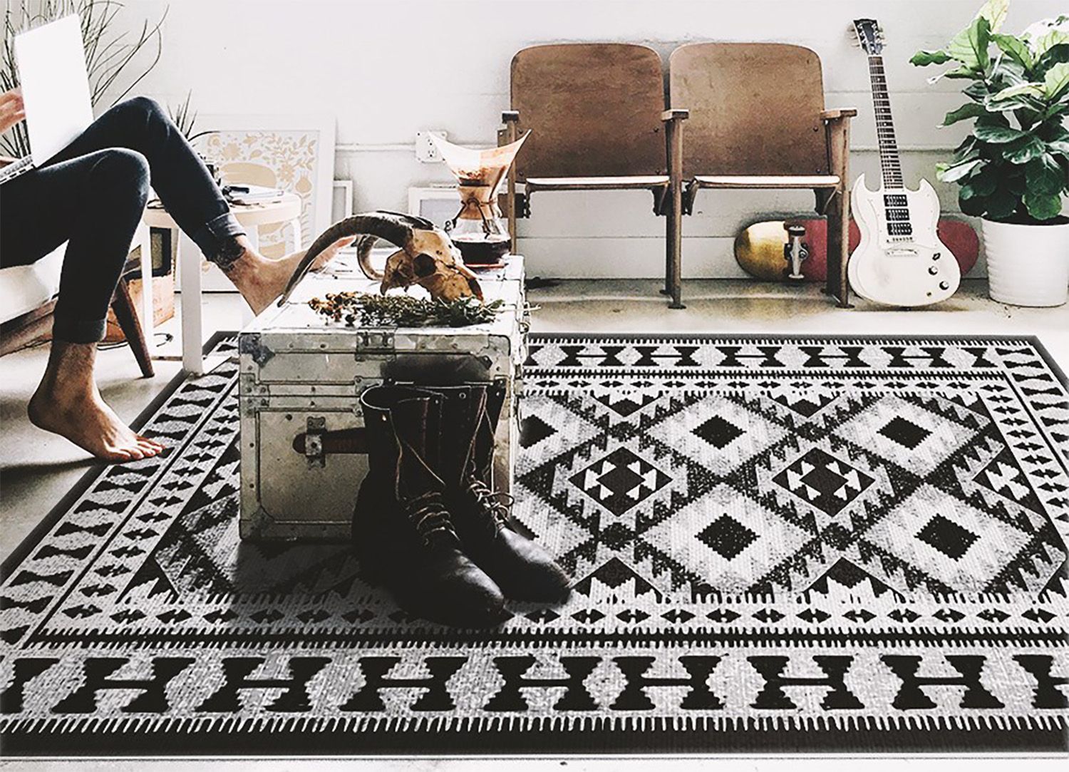 • Geometrisches Muster Design Teppich Kurzflor Flur Foyer Grau Schwarz Teppiche