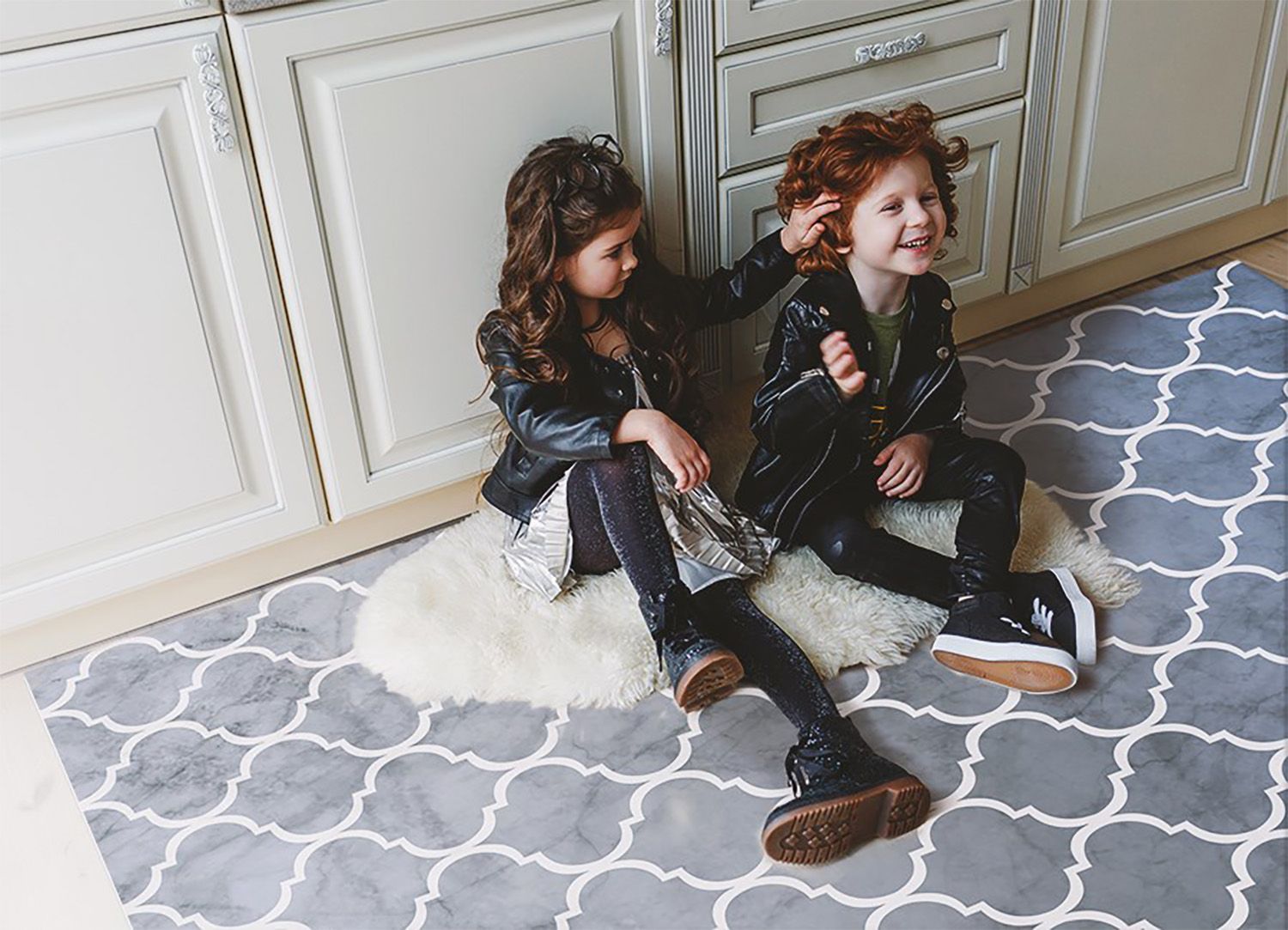 Teppich Pvc Zum Wohnzimmer Tulup Grau marokkanischer Stil Bodenmatte