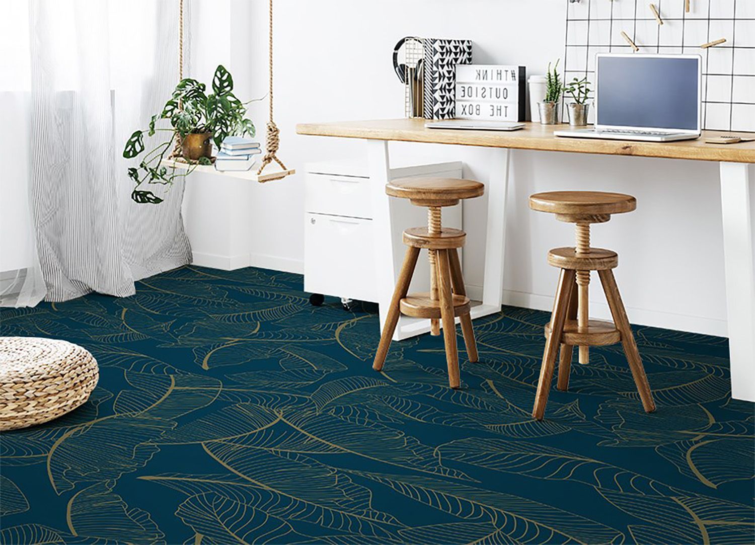 Teppich Pvc Zum Wohnzimmer Tulup Marine Blau blattskelett Bodenmatte