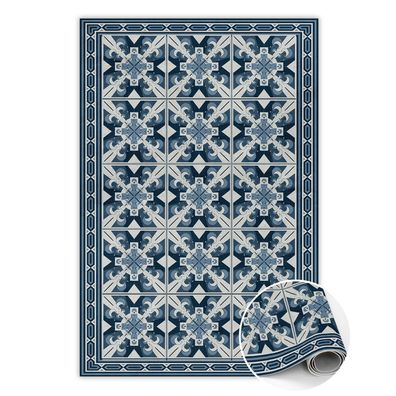 • Pvc Teppich Zum Wohnzimmer Tulup Marine Blau geometrische Rauten Bodenmatte