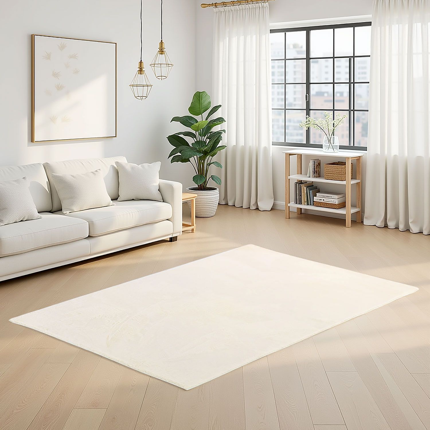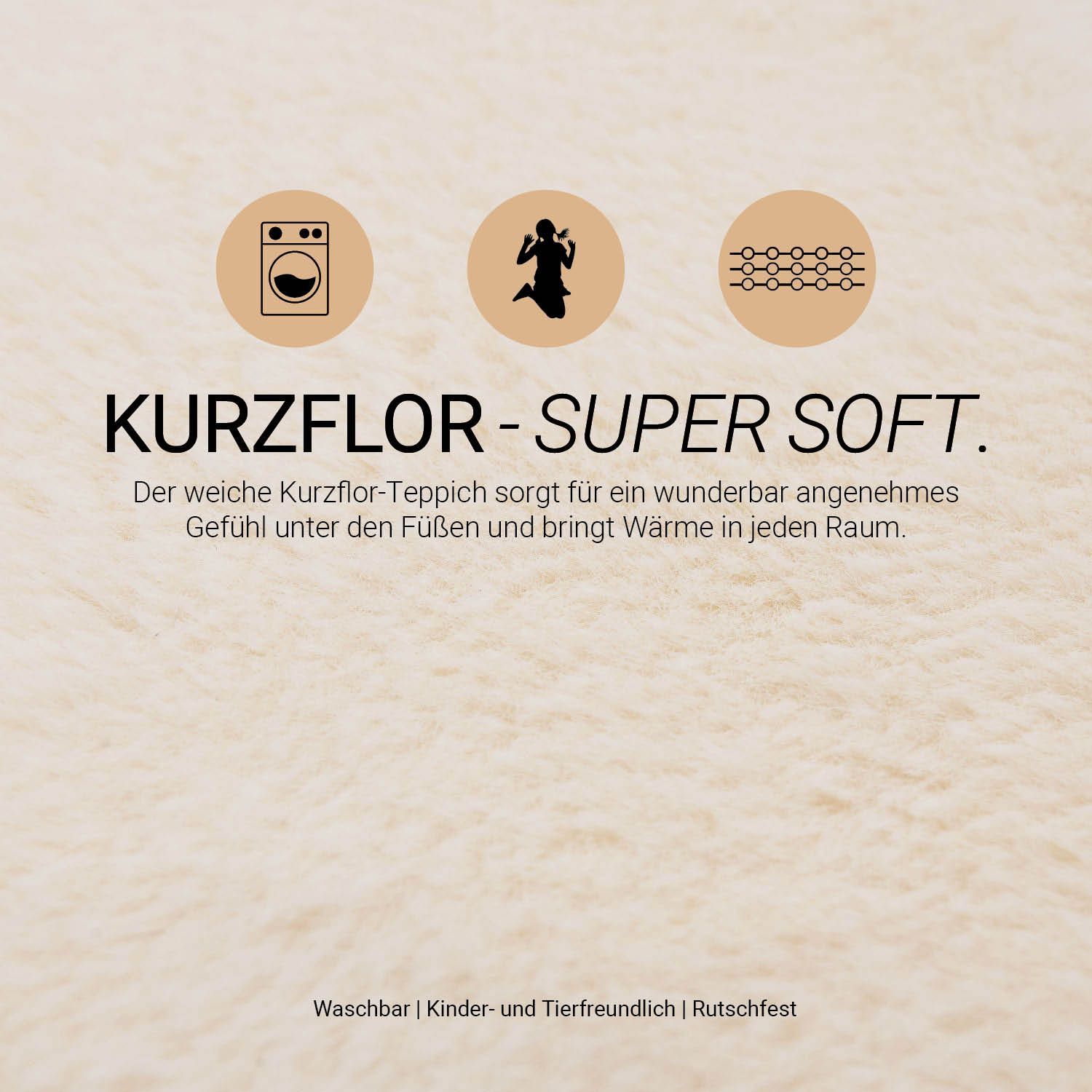 Teppich Wohnzimmer Beige Grau Weiß 120x180 oder 160x230 cm Kurzflor Teppich Waschb
