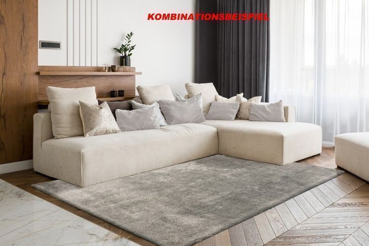 Teppich Wohnzimmer Hochflor weich Grau modern Langflor Uni Schlafzimmer Läufer