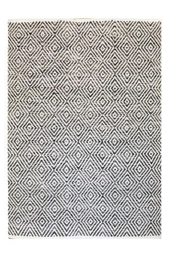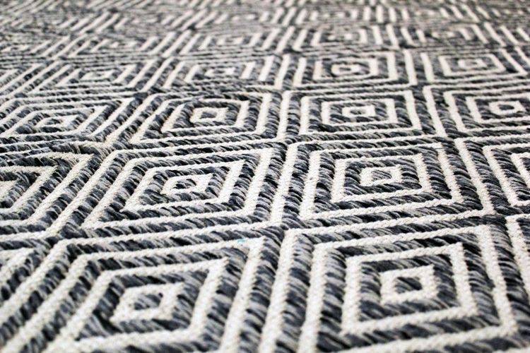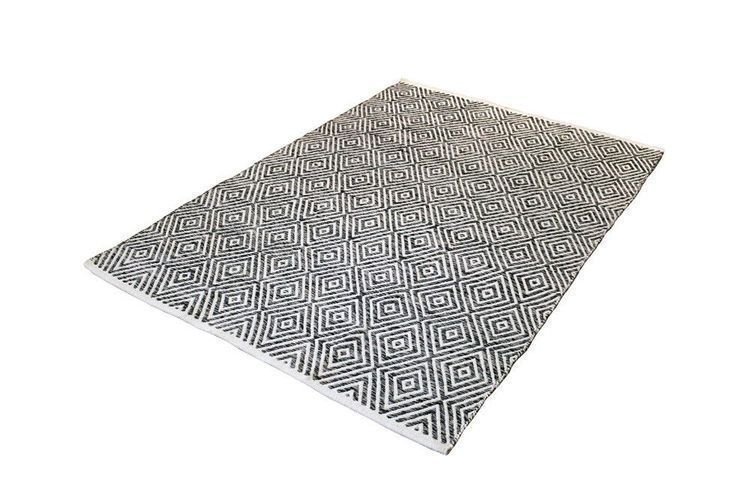Teppich Wohnzimmer modern Schlafzimmer boho Raute Ethno weiß Grau Baumwolle