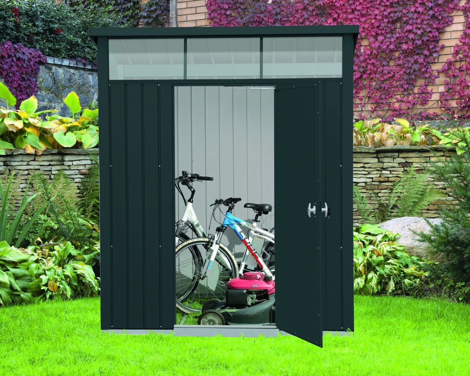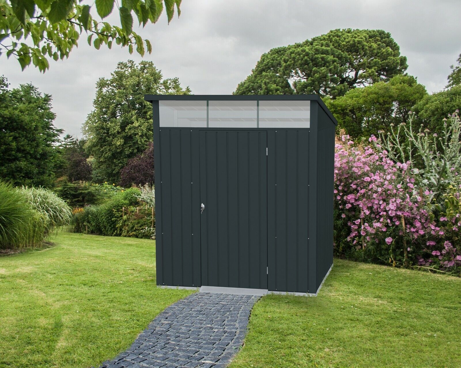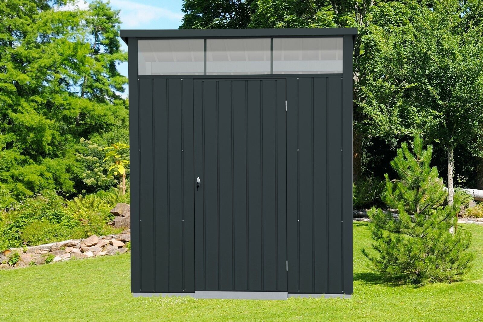 TEPRO Tepro 7456 Metallgerätehaus Palladium 6x5 anthrazit mit Pultdach und Oberlicht