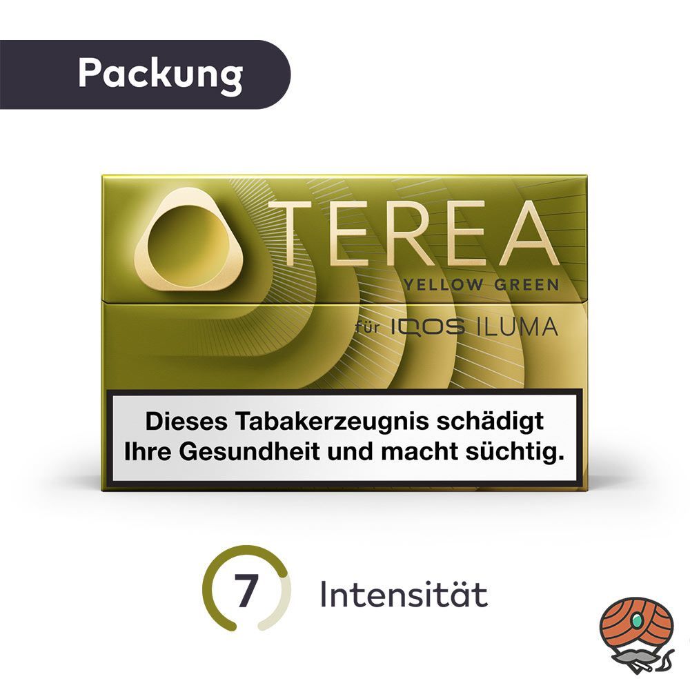 1 Stange TEREA Yellow Green Tabaksticks für IQOS ILUMA TEREA Yellow Green bieten einen ausgeprägten und würzigen Tabak-Geschmack. Die TEREA Tabaksticks von Philip Morris bestehen aus qualitativ hochwertigem und komprimiertem Tabak. TEREA Tabaksticks wurden eigens für die IQOS ILUMA-Geräte entwickelt