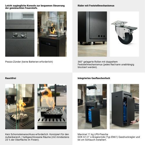 Terrassenkamin Patio Light Schwarz 8,2 kW Gas Feuerstelle Garten Kamin Ofen