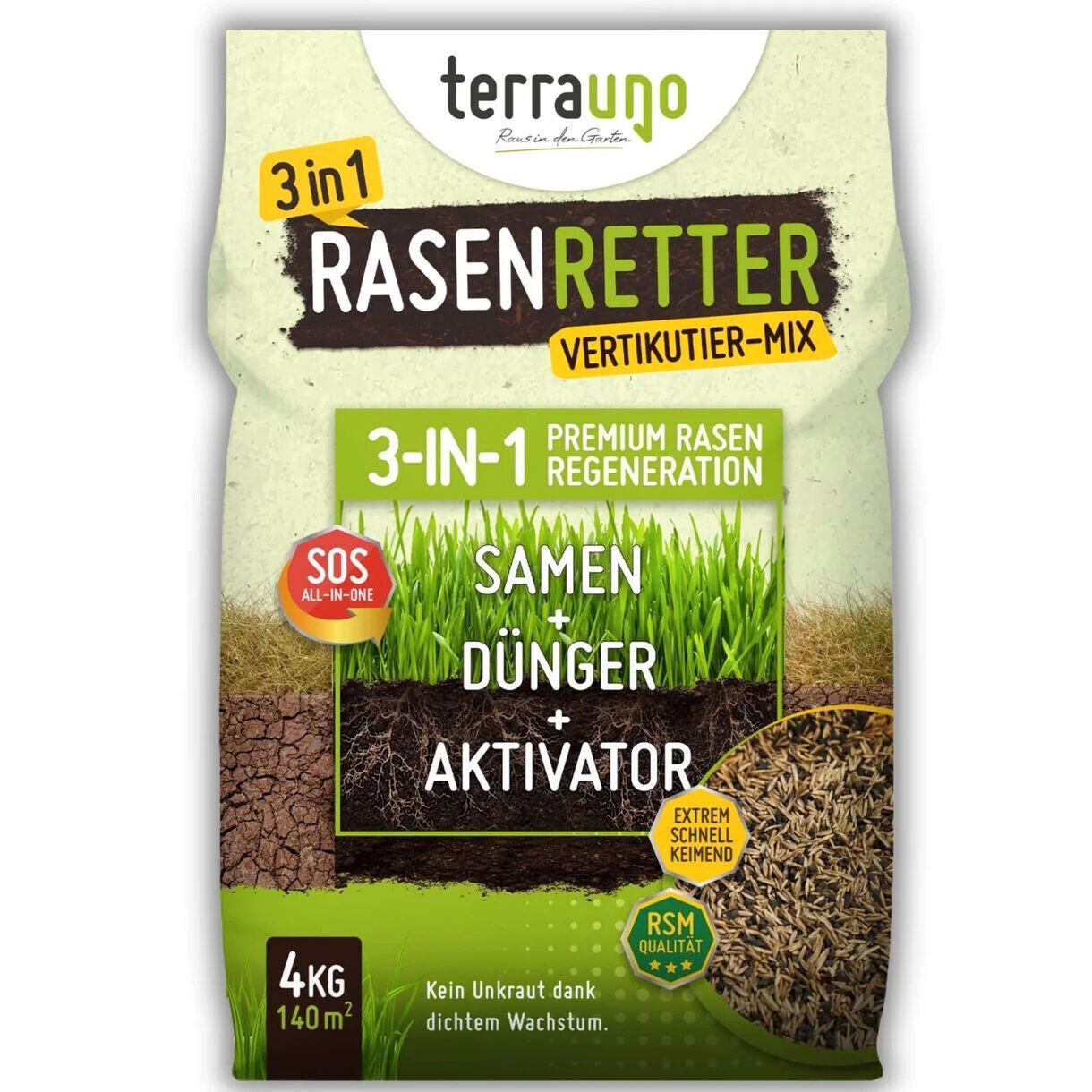 TerraUno Rasenretter Vertikutiermix Rasensamen Rasendünger Nachsaat Aktivator