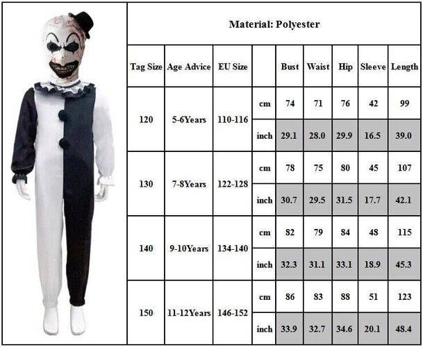 Terrifier 2 Art the Clown Cosplay Kostum Halloween Kinder Jungen Madchen Outfit