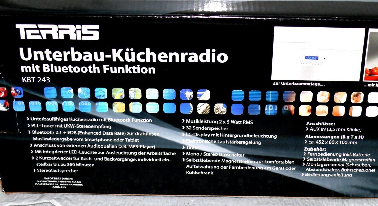 Terris KBT 243 Unterbau Radio Küchenradio Bluetooth AUX LED Licht FB PLL UKW SIL