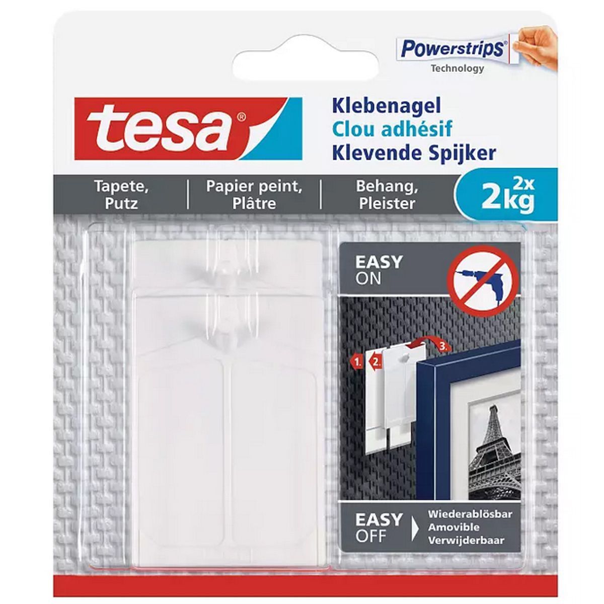 tesa Klebenagel für Tapeten und Putz Haltekraft 2 Kg 2 Nägel 6 Stripes