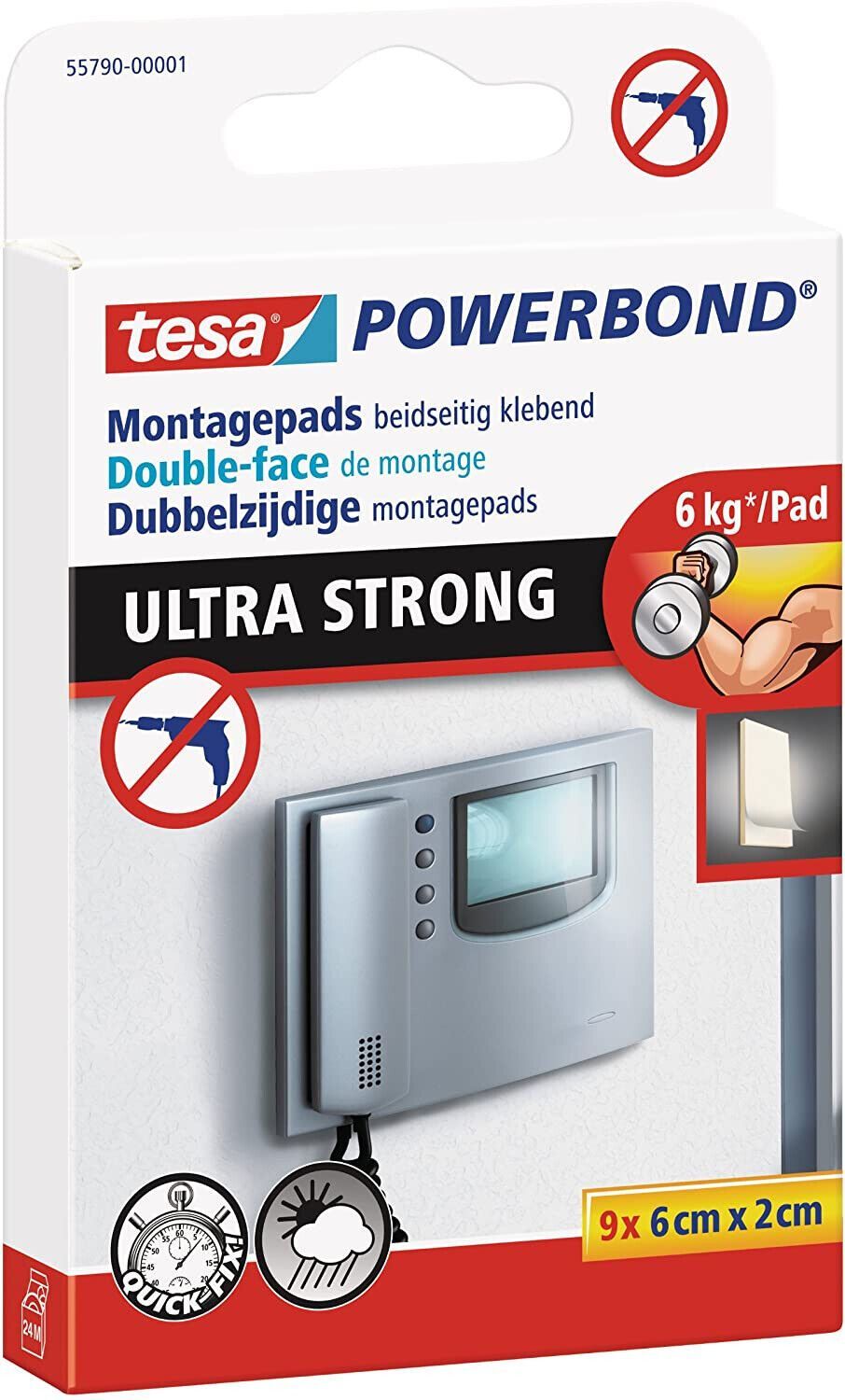 Tesa Tesa Powerbond Ultra Strong Klebepads Doppelseitige Pads 6 kg Montage 9er Pack