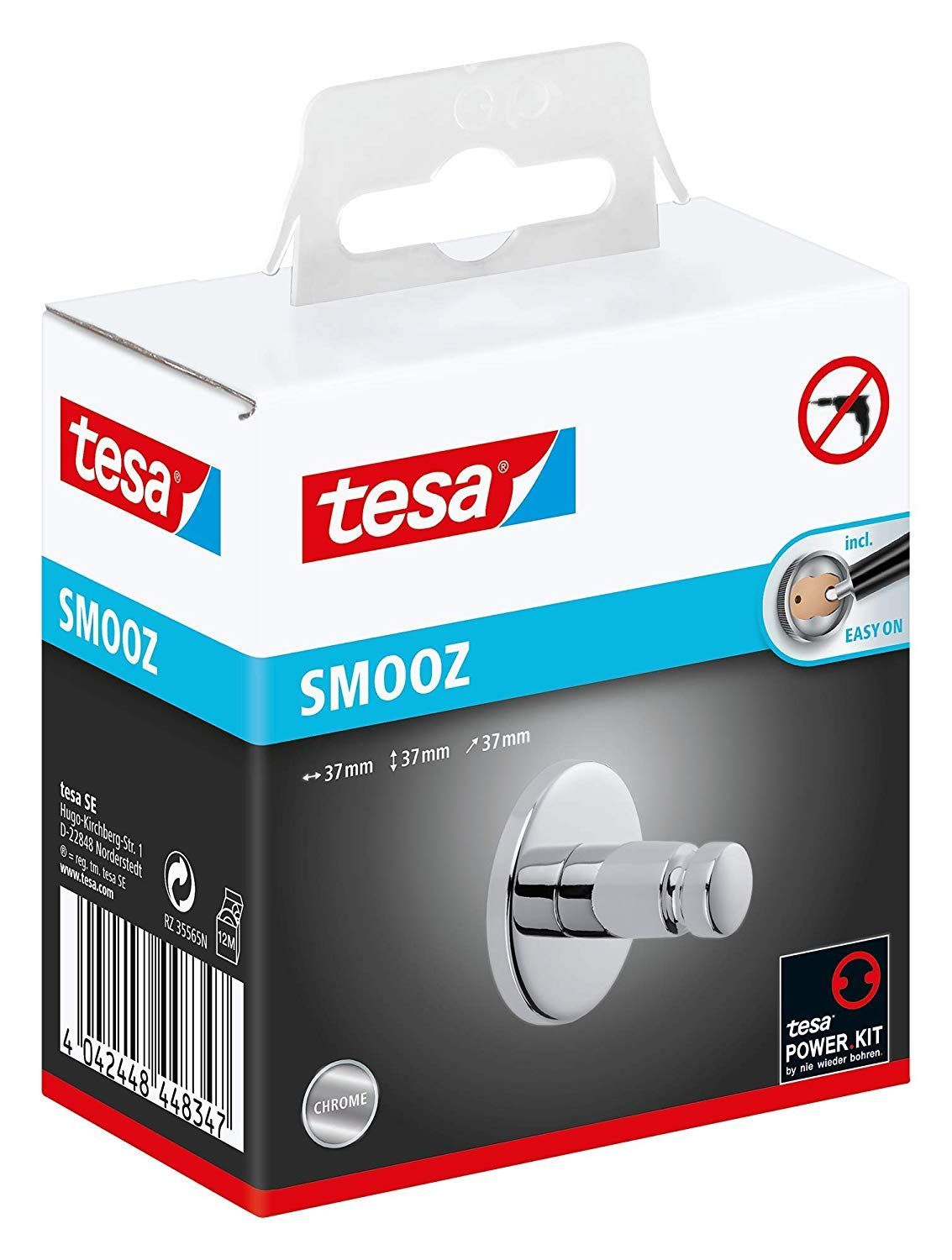 tesa Tesa Smooz Handtuchhaken (NICHT BOHREN, verchromt, rundes Design, hohe Haltekraft (bi