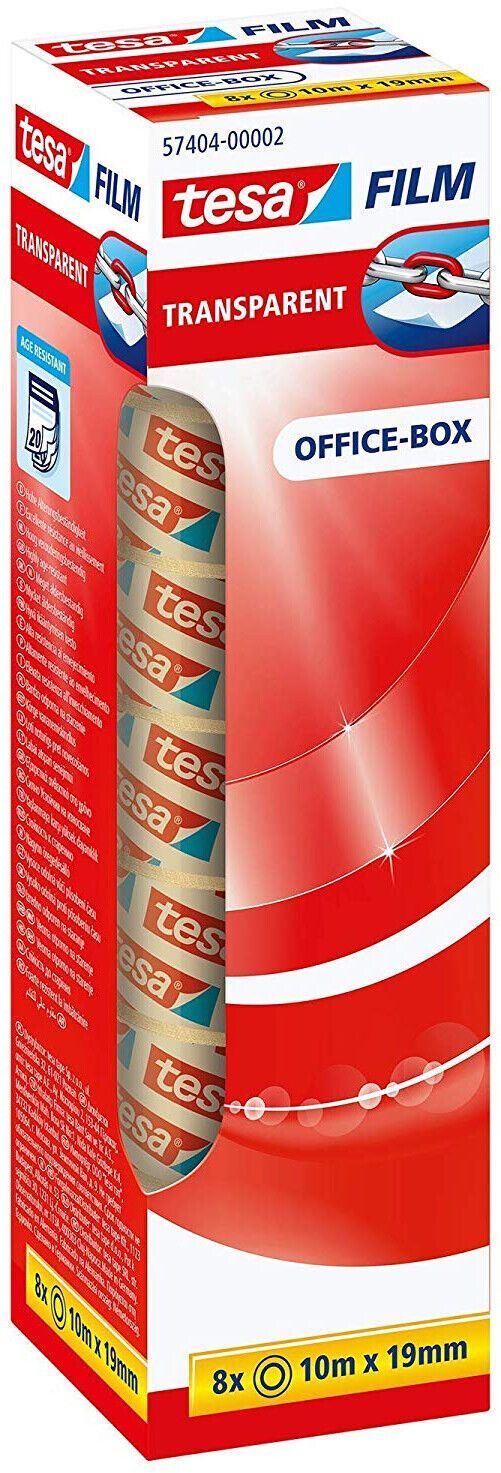 Tesafilm Office-Box Klebefilm transparent 10 m x 19 mm Béro 8 Rollen 8er Pack