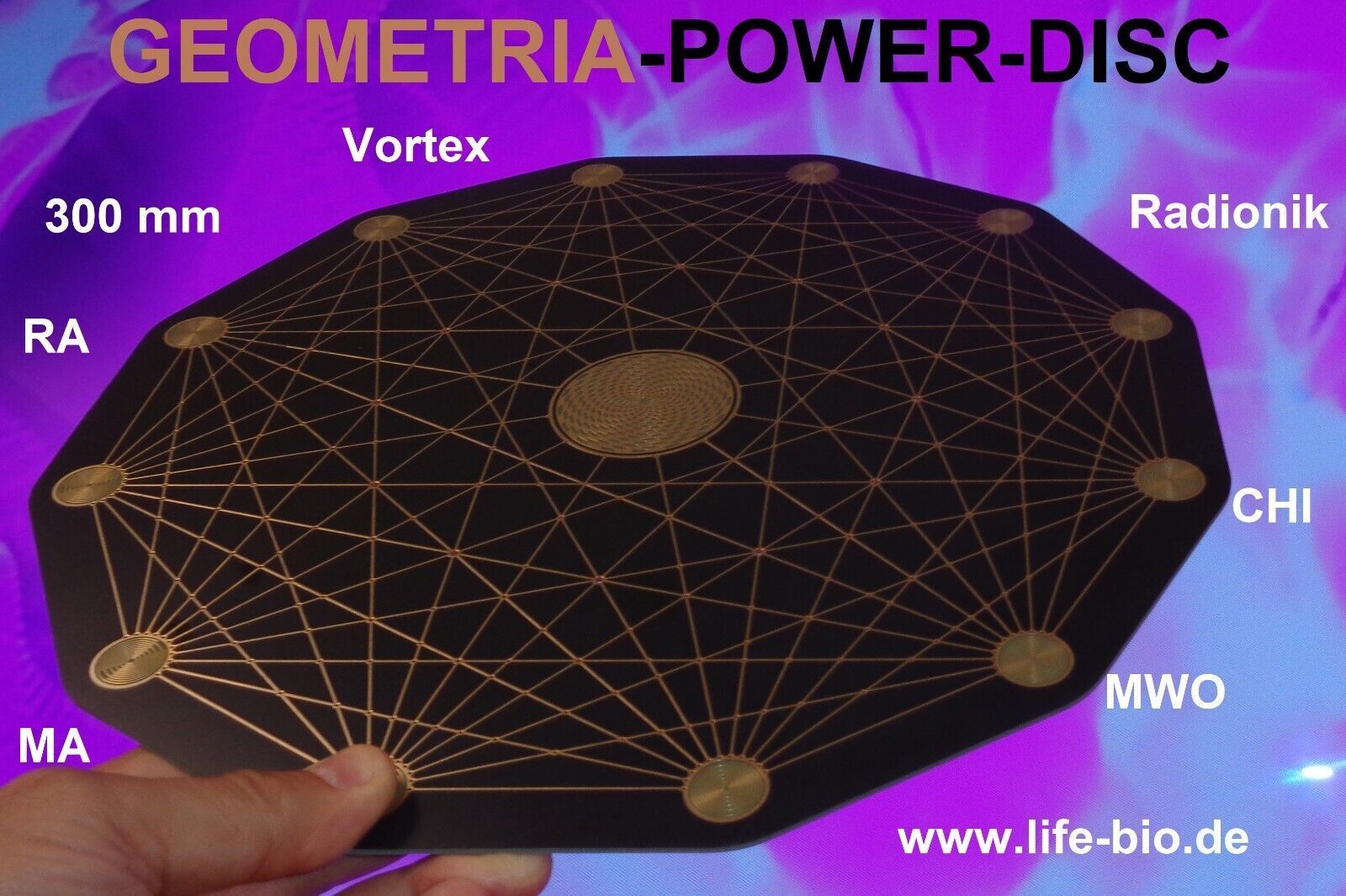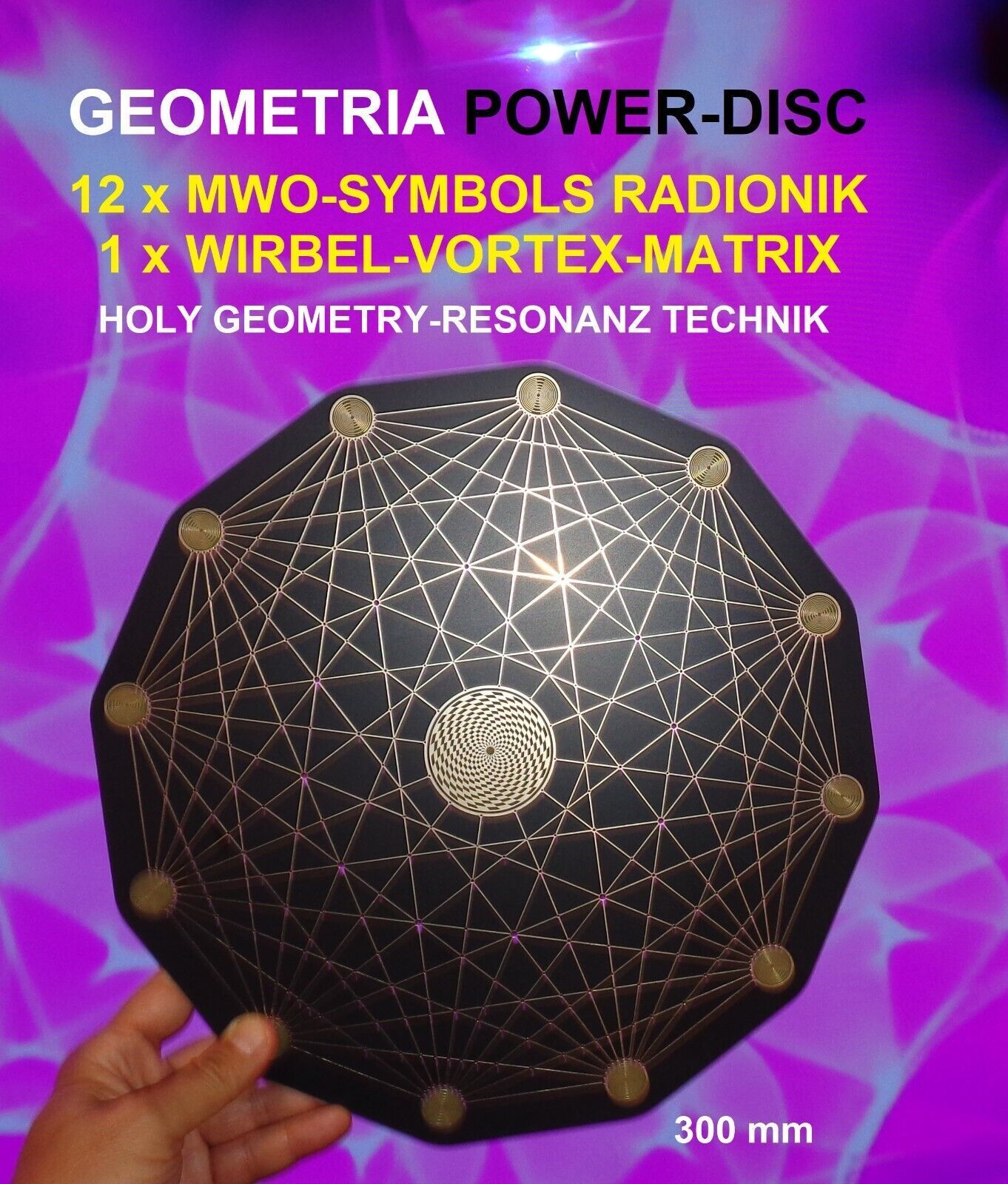 Energie Lade Resonanz Scheibe Harmonie Platte Resonanz-Platte Getränke Lebensmittel Platte Harmony-Disc Teslaantenne Lakhovsky Multiwelle Oszillator Chi Skalarwellen Radionik Holy Geometry 30 cm Mega Matrix Quantenfeld-Scheibe Life-Feld Biophoton Platte