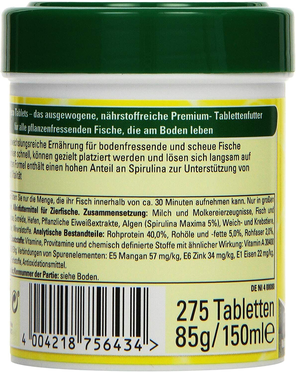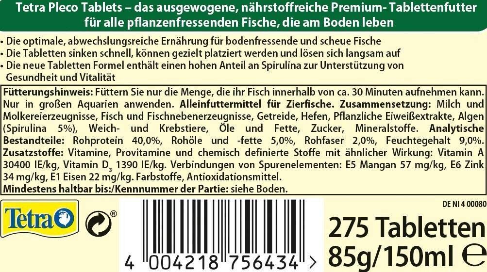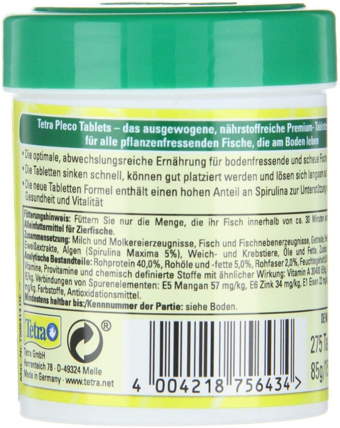 Tétra Tetra Pleco Tablets 275 Grénfutter-Tabletten Spirulina Bodenfische Welsfutter