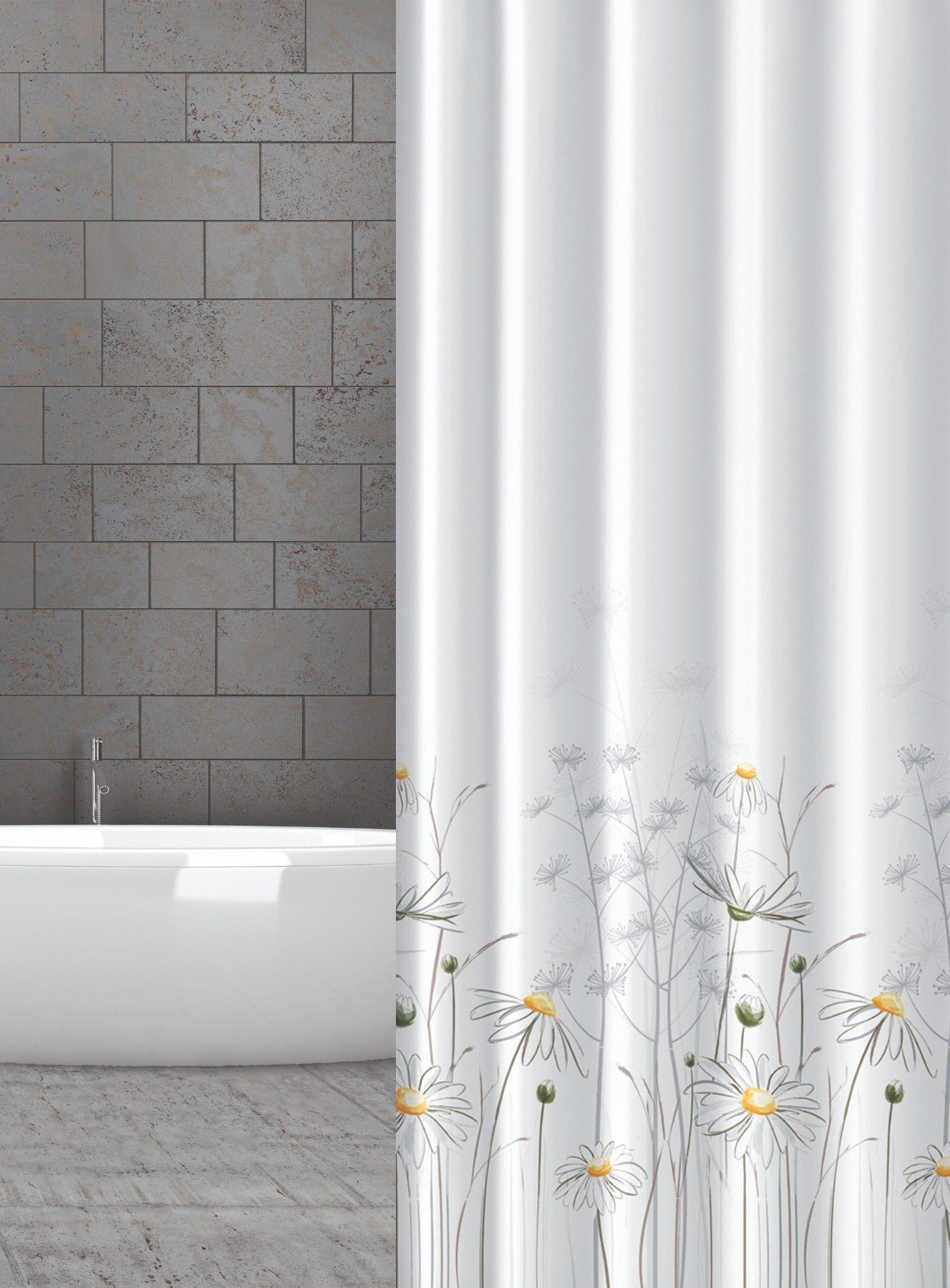 Textil Duschvorhang 8 Maße Weiss Gelb Kamillen Gänseblümchen inkl. Duschvorhangringe