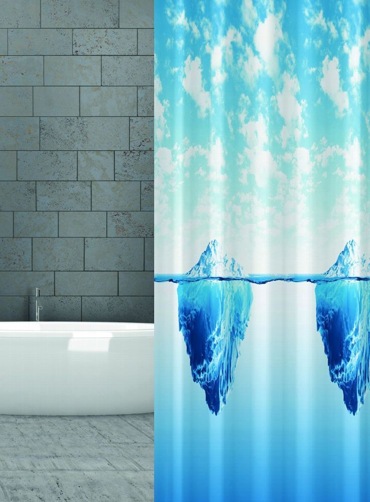 Textil Duschvorhang Eisberg Maße 180x180 cm Unsere Duschvorhänge bestechen durch eine hervorragende Verarbeitungsqualität und Liebe zum Detail Merkmale waschbar bis 40 Bügelbar 100% Polyester Beschwerungsband 50 gramm am unterem Saum eingearbeitet eingearbeitete Ösen Neuware Original verpackt Qualit