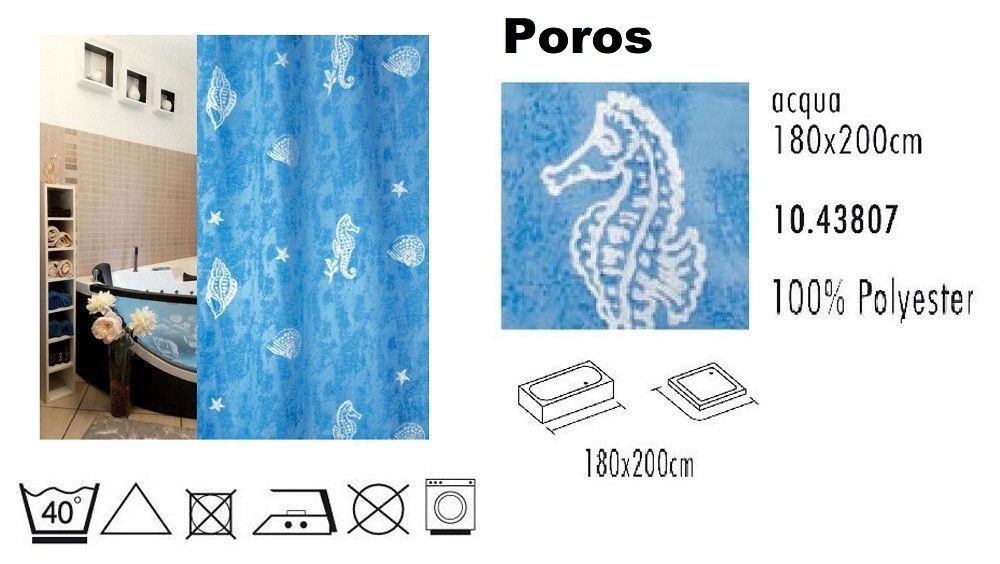 Textil Duschvorhang Poros Acqua - Hell Blau 180x200cm. Maritim