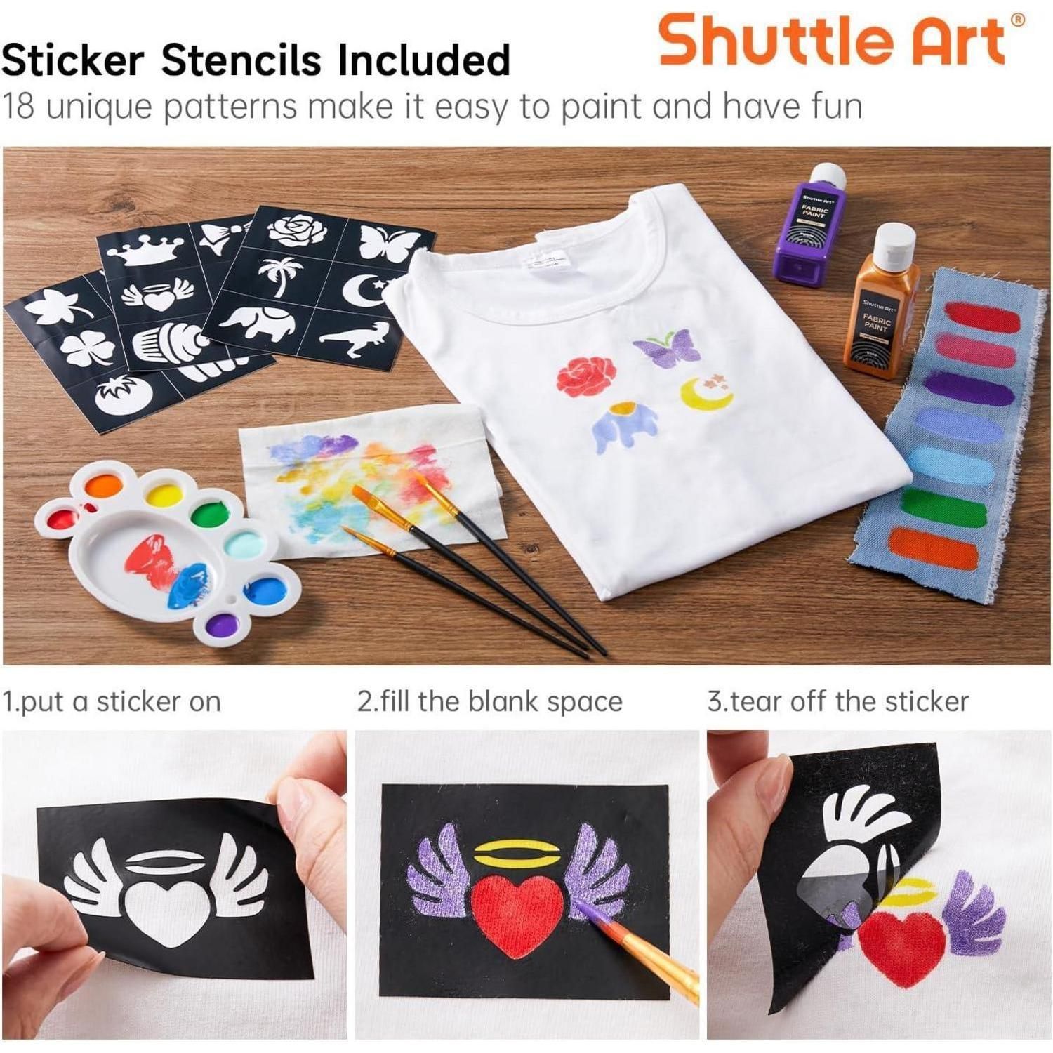 Textilfarbe Set 18 waschfeste Stoffmalfarben je 60ml Pinsel Vorlagen