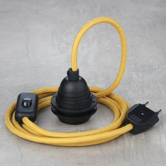 Textilkabel Lampenpendel beige mit E27 Kunststoff Lampenfassung Schnurschalter