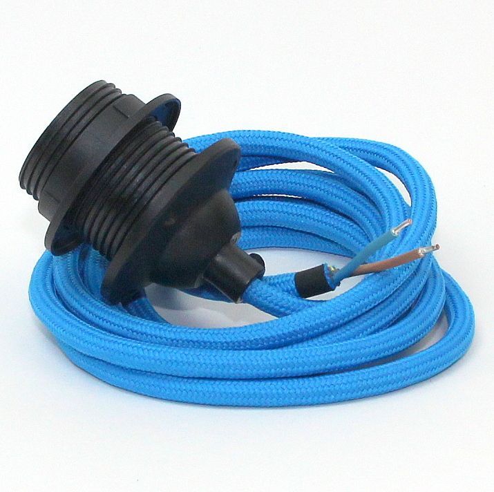 Textilkabel Lampenpendel blau mit E27 Dach-Lampenfassung schwarz