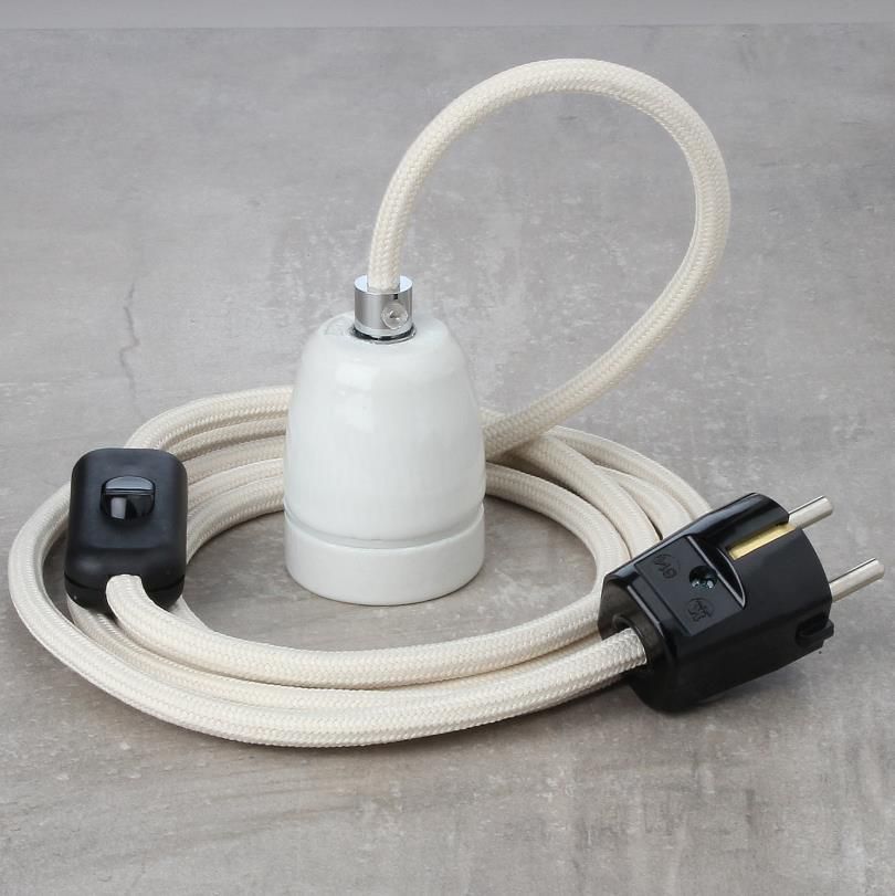 Textilkabel Lampenpendel elfenbein mit E27 Porzellanfassung Schnurschalter und