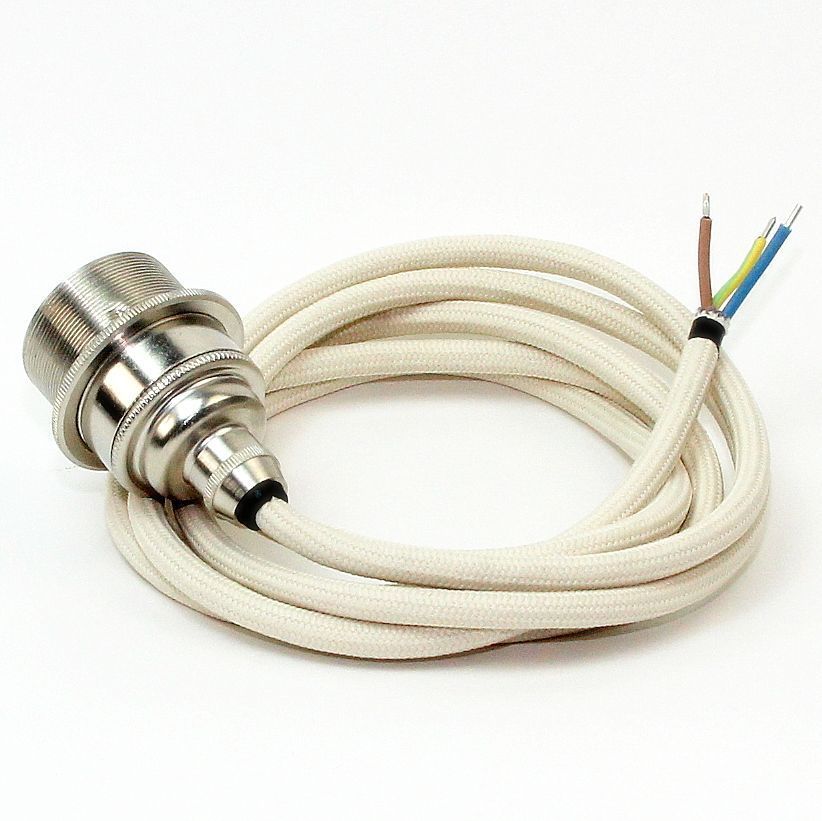 Textilkabel Lampenpendel elfenbein mit E27 Vintage Metall-Fassung Nickel matt