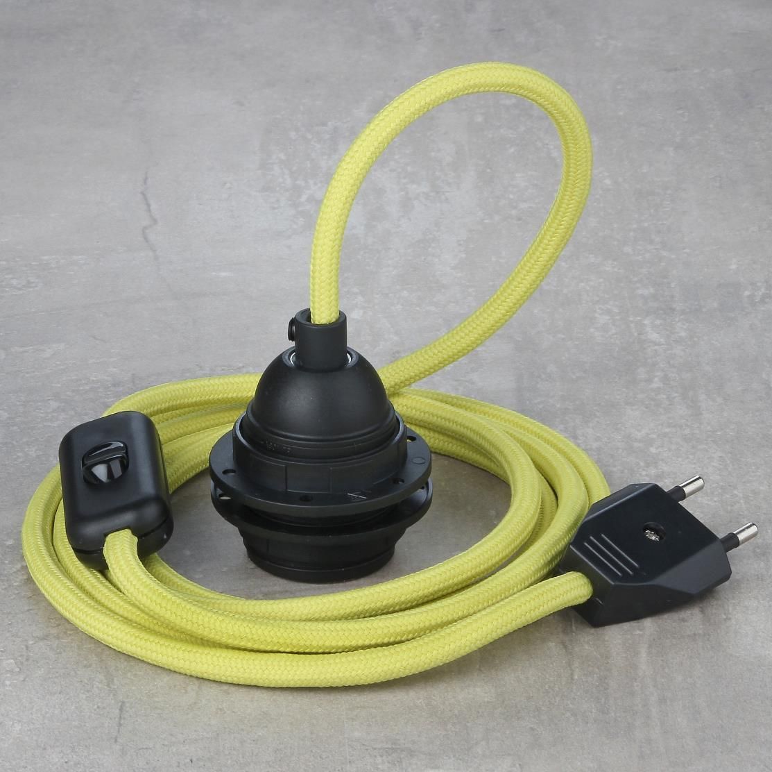 Textilkabel Lampenpendel gelb mit E27 Kunststoff Lampenfassung Schnurschalter und